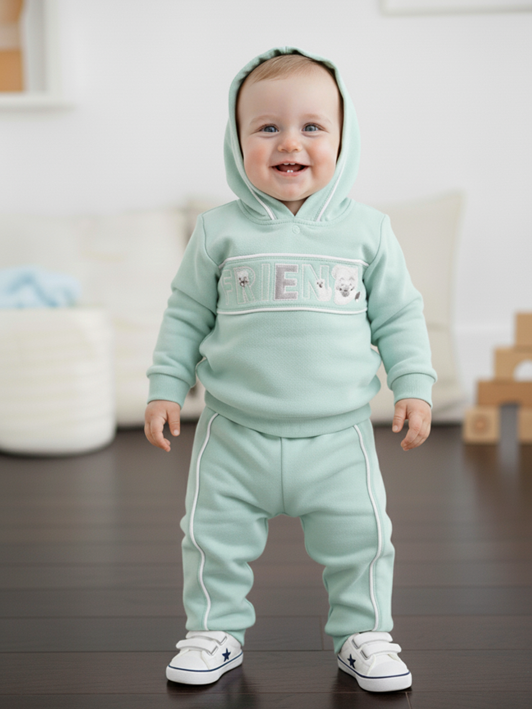 Dress your little one in comfort and style with this adorable bear print hoodie and jogger set, designed to keep kids cozy, active, and cheerful all day long. Made from a premium cotton blend fabric, this outfit is soft, breathable, and gentle on delicate skin, ensuring your child feels comfortable in every season. The hoodie offers warmth for colder days, while the joggers come with a stretchable waistband and ribbed cuffs that provide a secure yet flexible fit, giving kids the freedom to move, run, and play without restrictions.