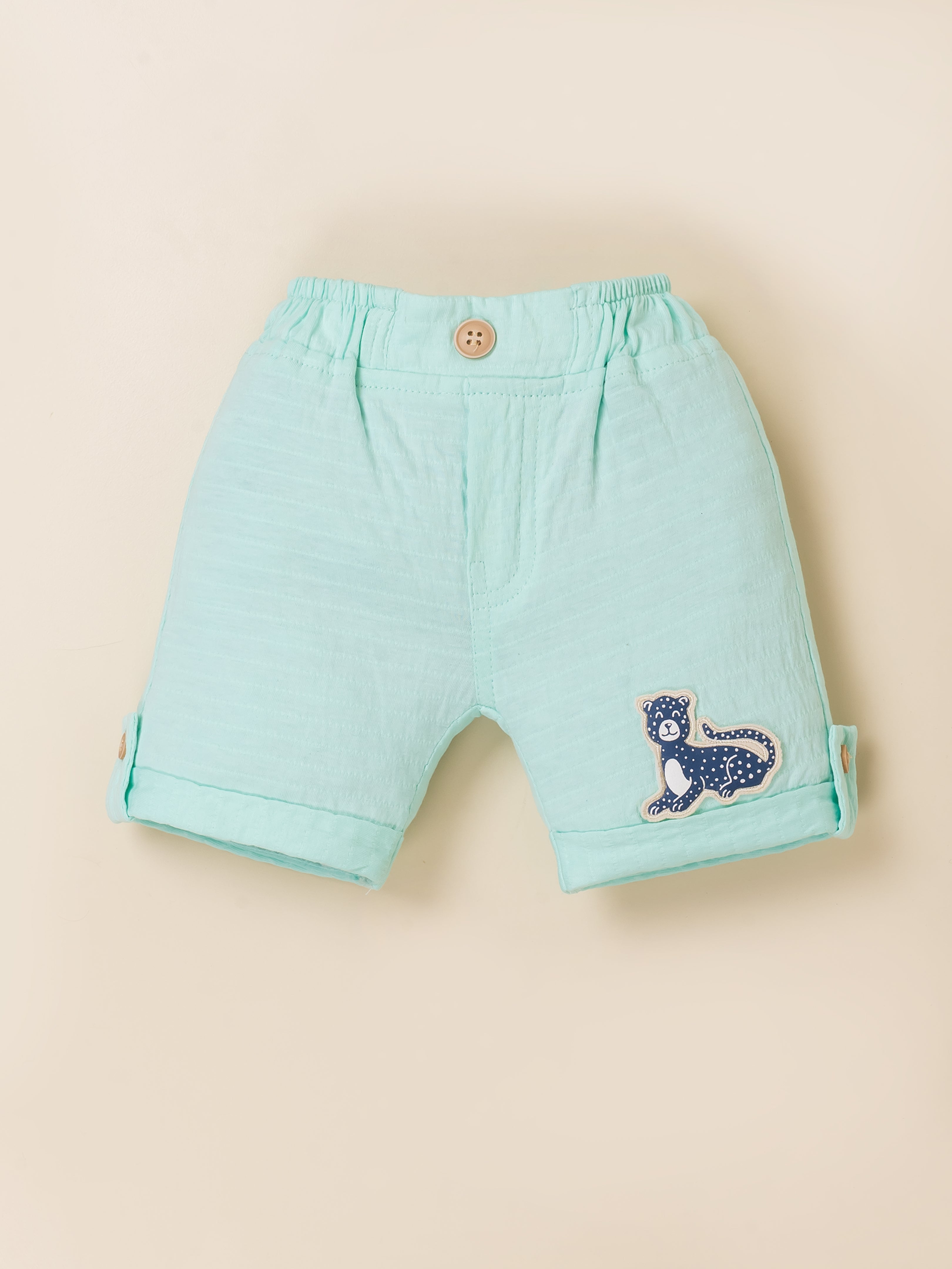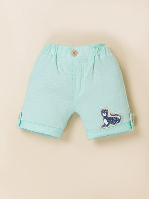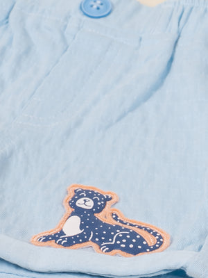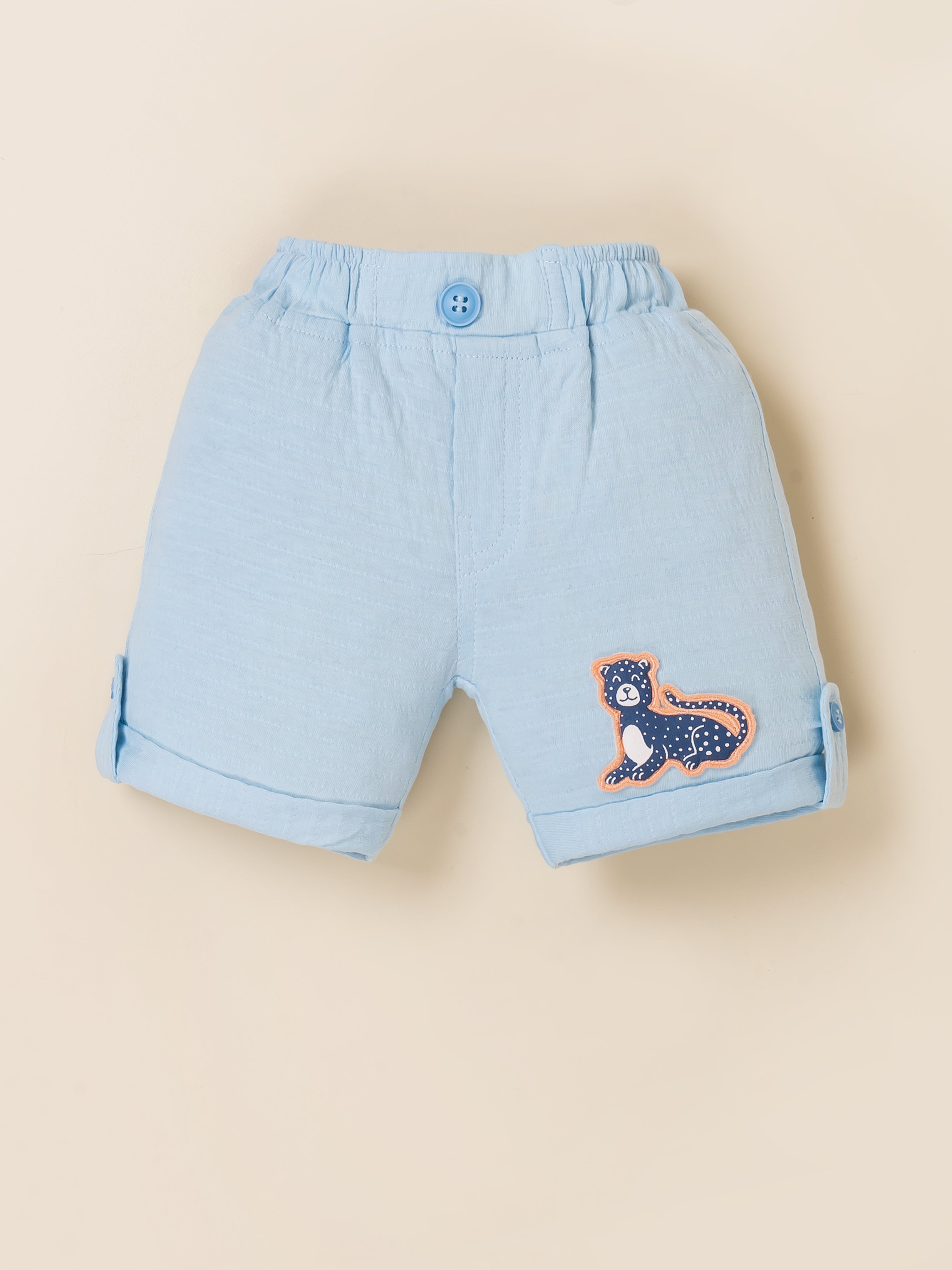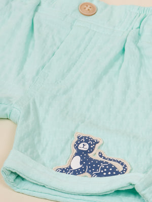 - The shorts include a matching embroidered leopard patch on the left leg to complete the safari look.