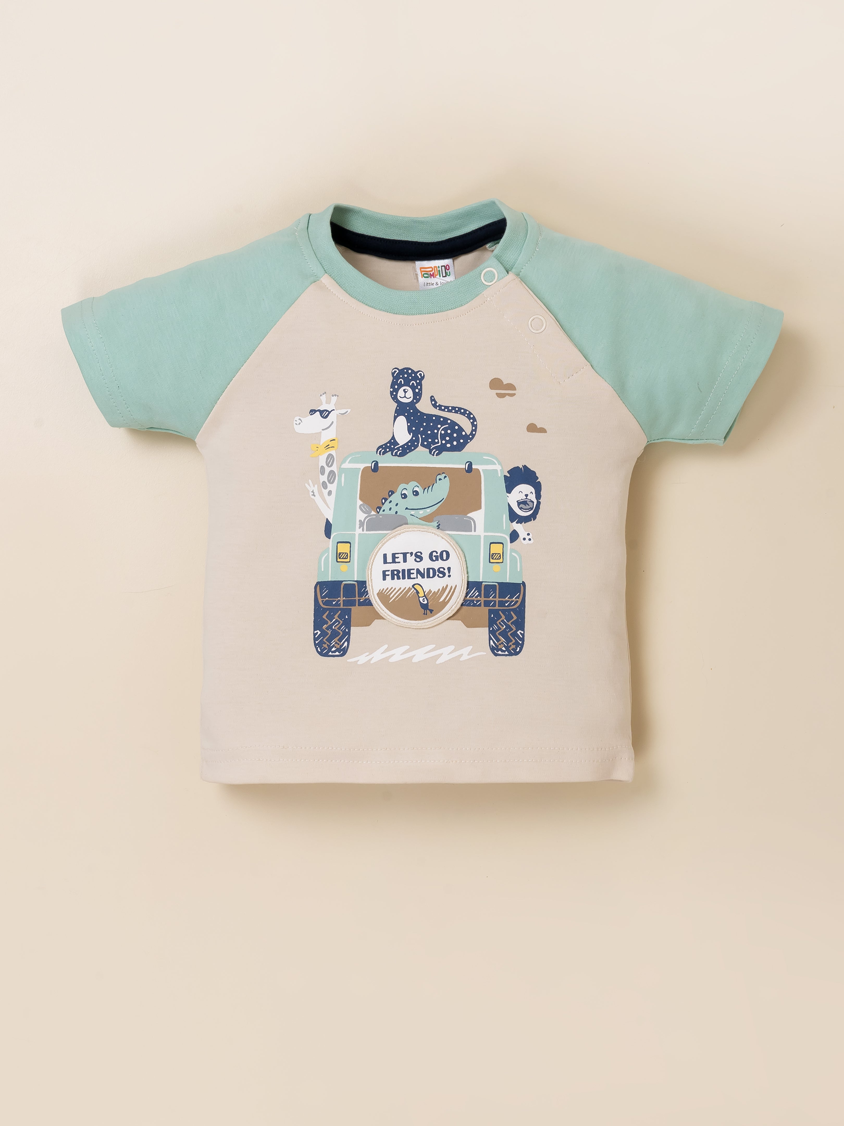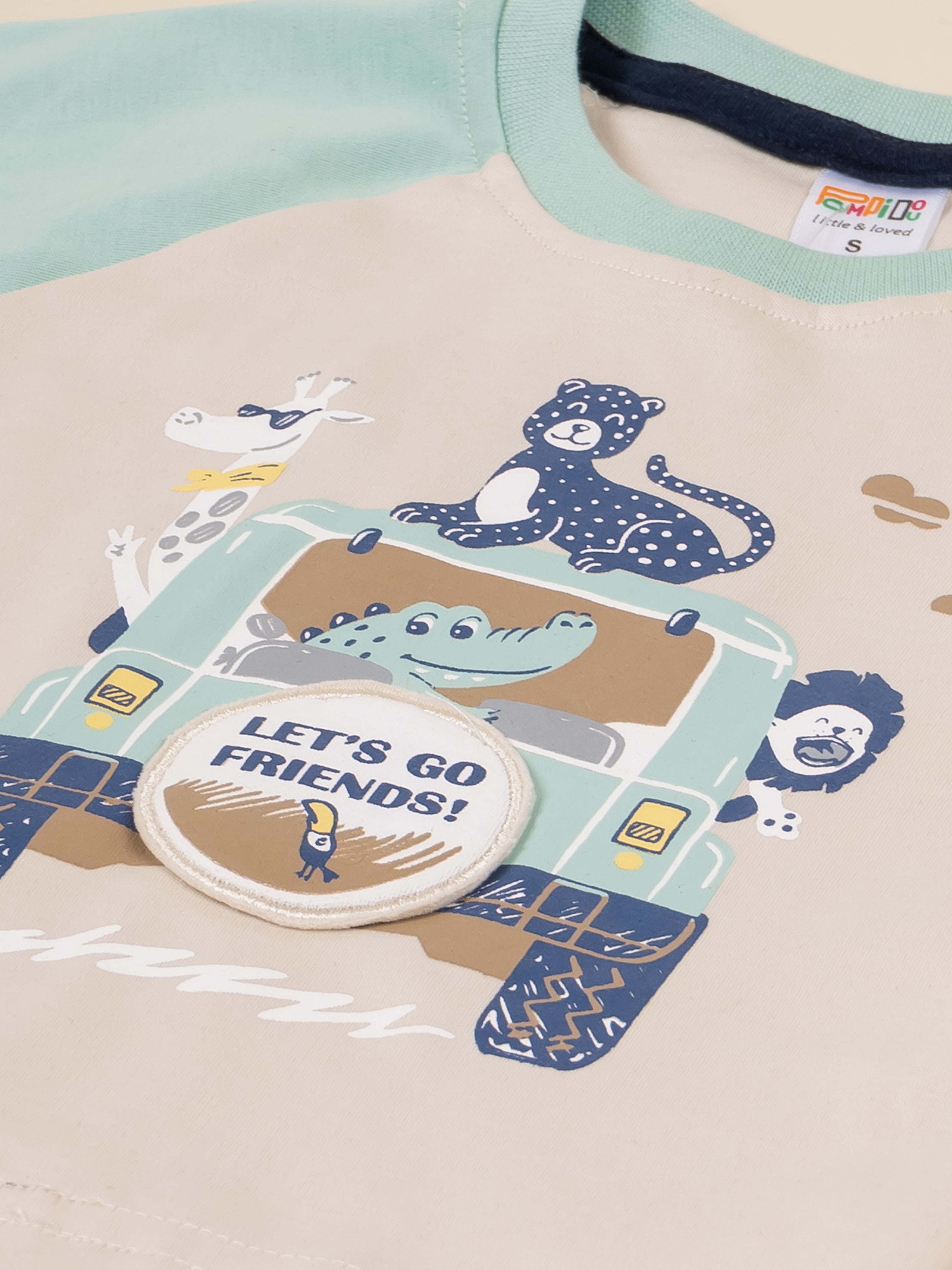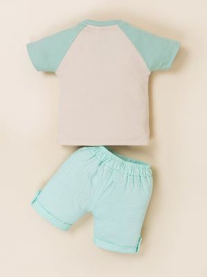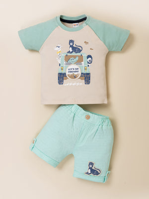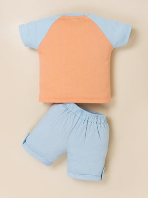 Bring a touch of nature-inspired charm to your little explorer's wardrobe with this comfortable 2-piece coordinated set.Paired with matching soft peach shorts, this set is crafted for durability and ease of movement, making it the perfect choice for active playdates, daycare, or casual weekend outings.