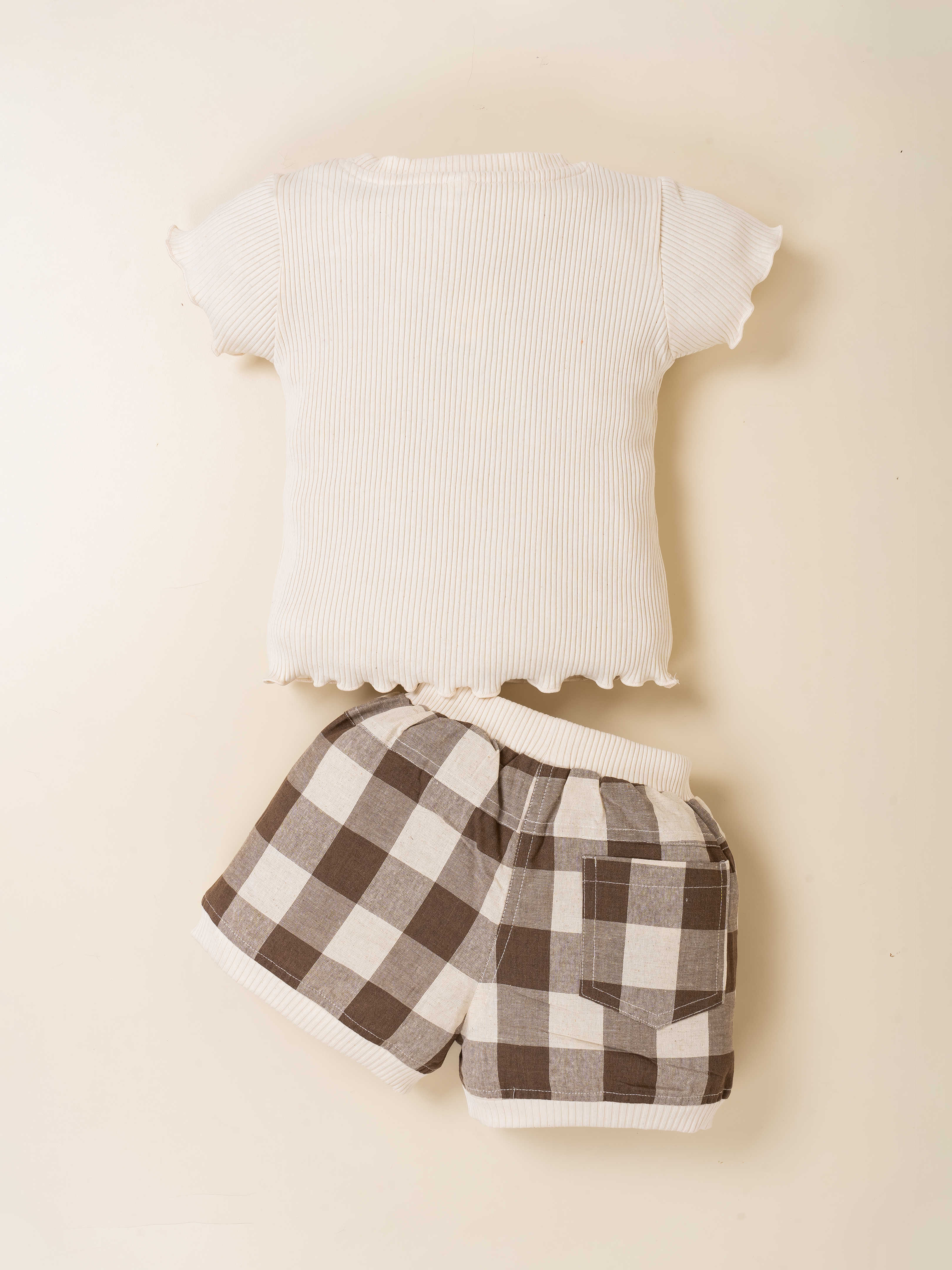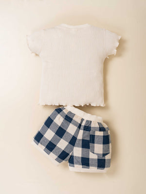 Baby Girl Softtouch Knit Top & Woven Check Shorts 2-Piece Set