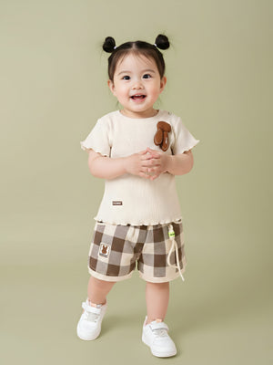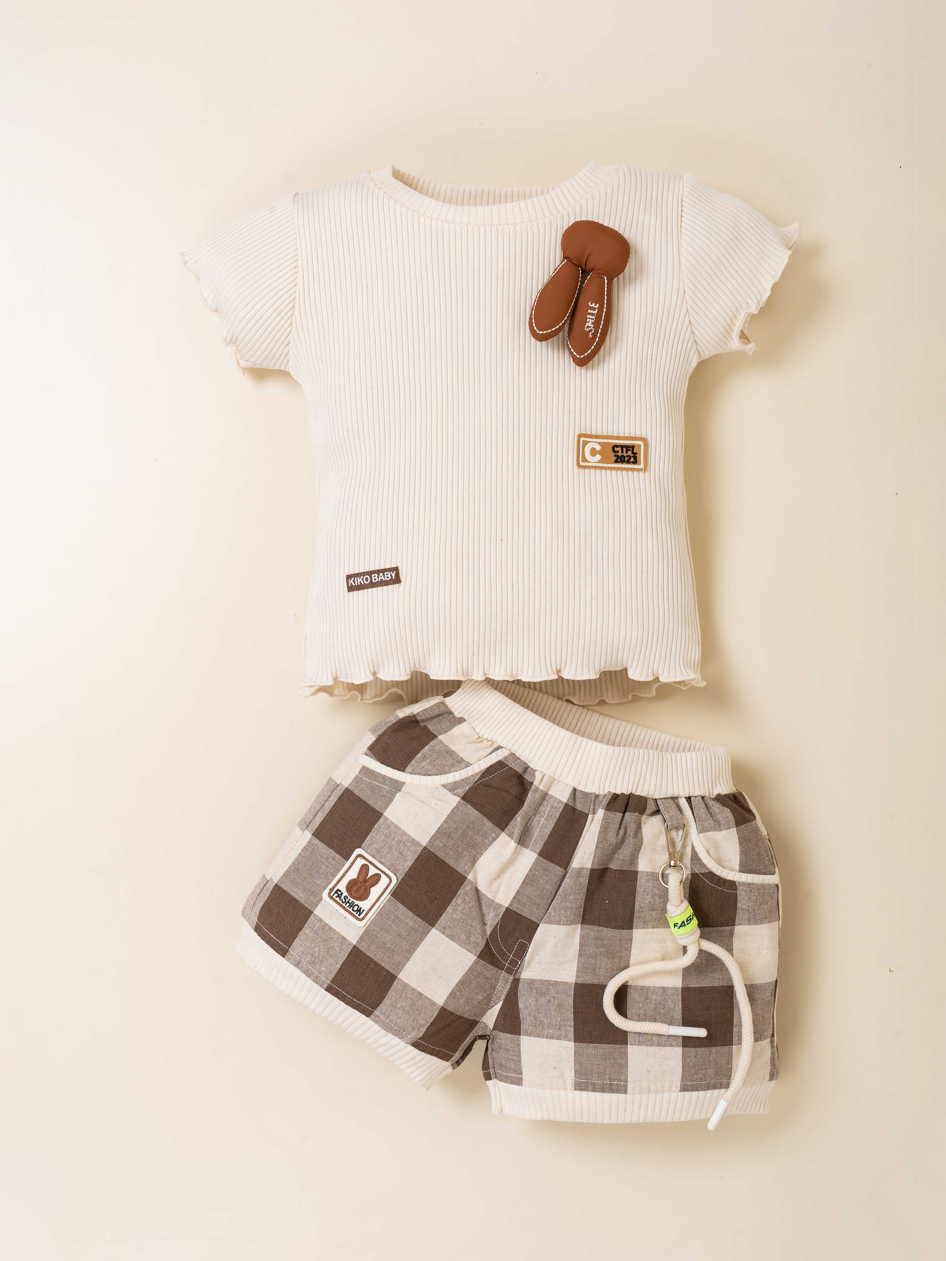 Dress your little one in adorable comfort with the KIKO Original 2-Part Set. This charming outfit features a soft touch knit top with cute bunny ear patch detailing, paired with stylish woven check shorts. Designed for both comfort and playful fashion, the breathable knit fabric feels gentle on delicate skin while the woven check shorts add a trendy, structured look. Perfect for summer outings, casual wear, and fun playtime moments, this coordinated set blends comfort, durability, and irresistible style