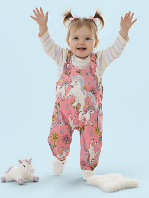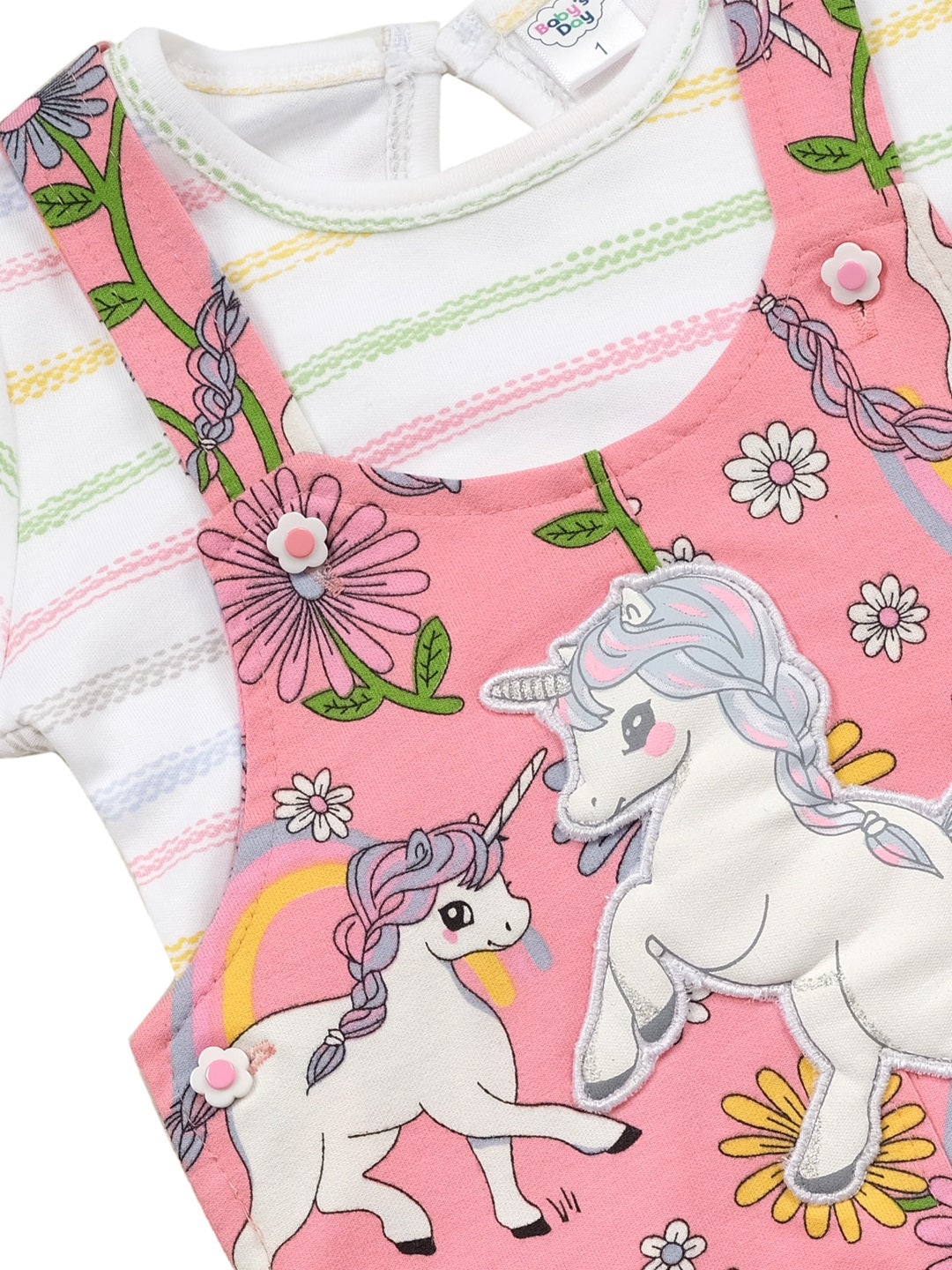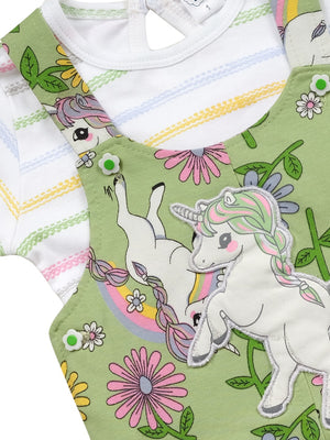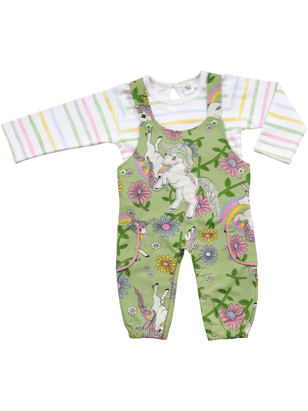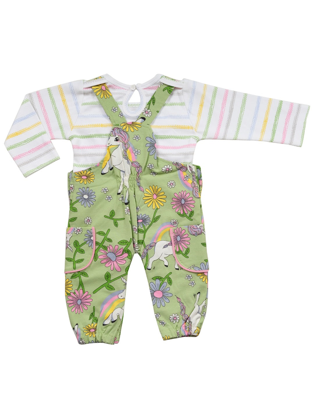- Good quality Floral printed and Horse Embroidery dungri Green & Pink for kids and baby girls. Designed to provide a comfortable and snug fit, this dungaree and romper top is tailored to accommodate the active lifestyle of young children