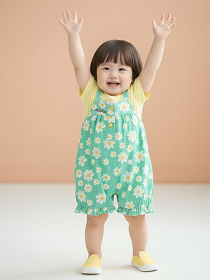 Babys Day This is a clothing set for babies that includes a dungaree set featuring an Flower Printed theme and a T-shirt. We have the perfect Dungree set for your little Girls that will make them look stylish & cute while still being comfortable. Let your Outfit be sorted for All Seasons. Dungarees from is a fashionable casual wear & party wear to dress up your little one in style. Dungarees from is a fashionable casual wear & party wear to dress up your little one in style. Dungaree and T-Shirt Clothing Set.