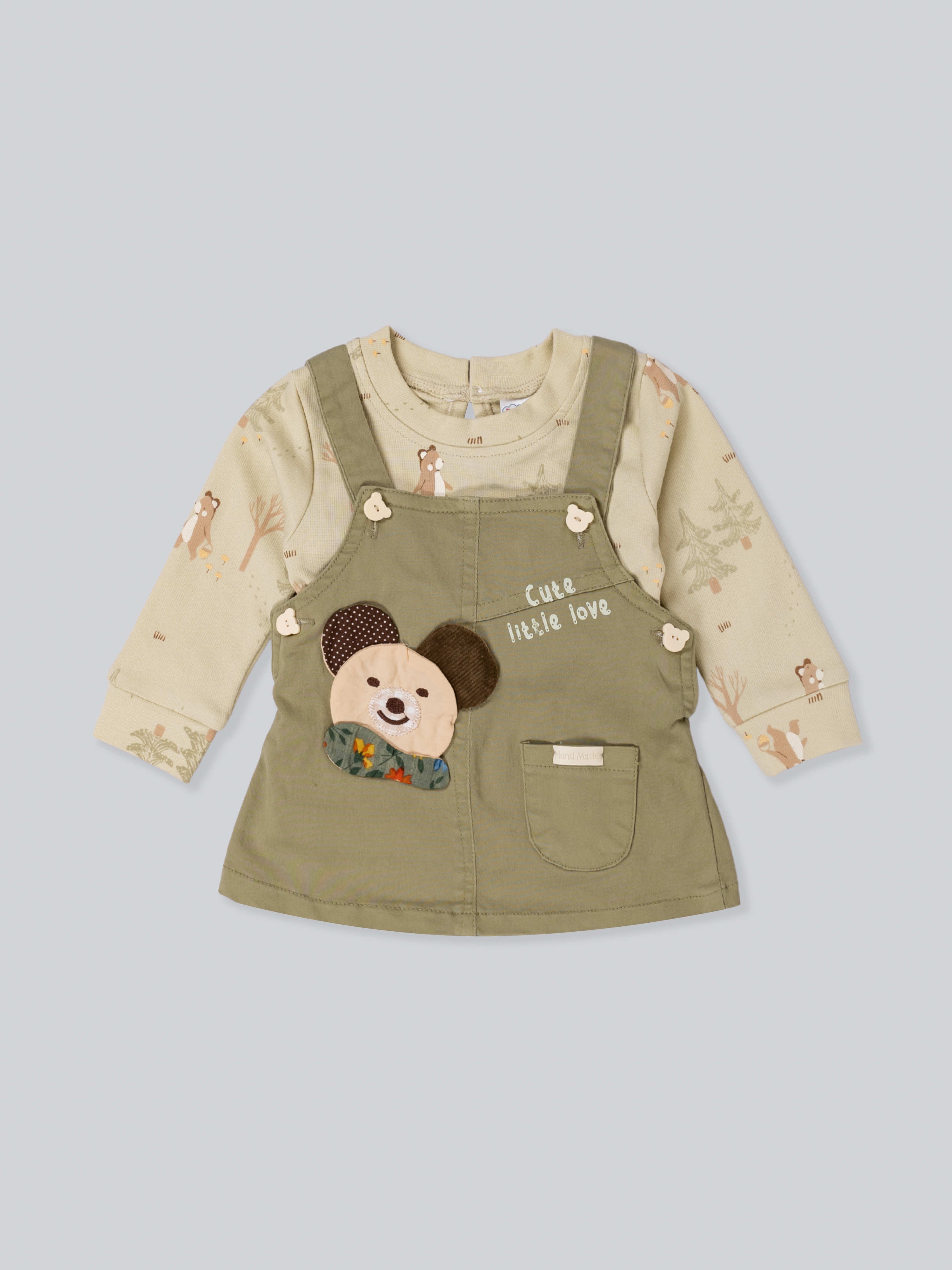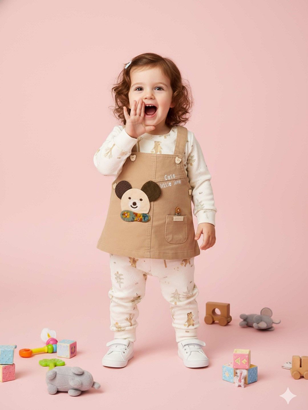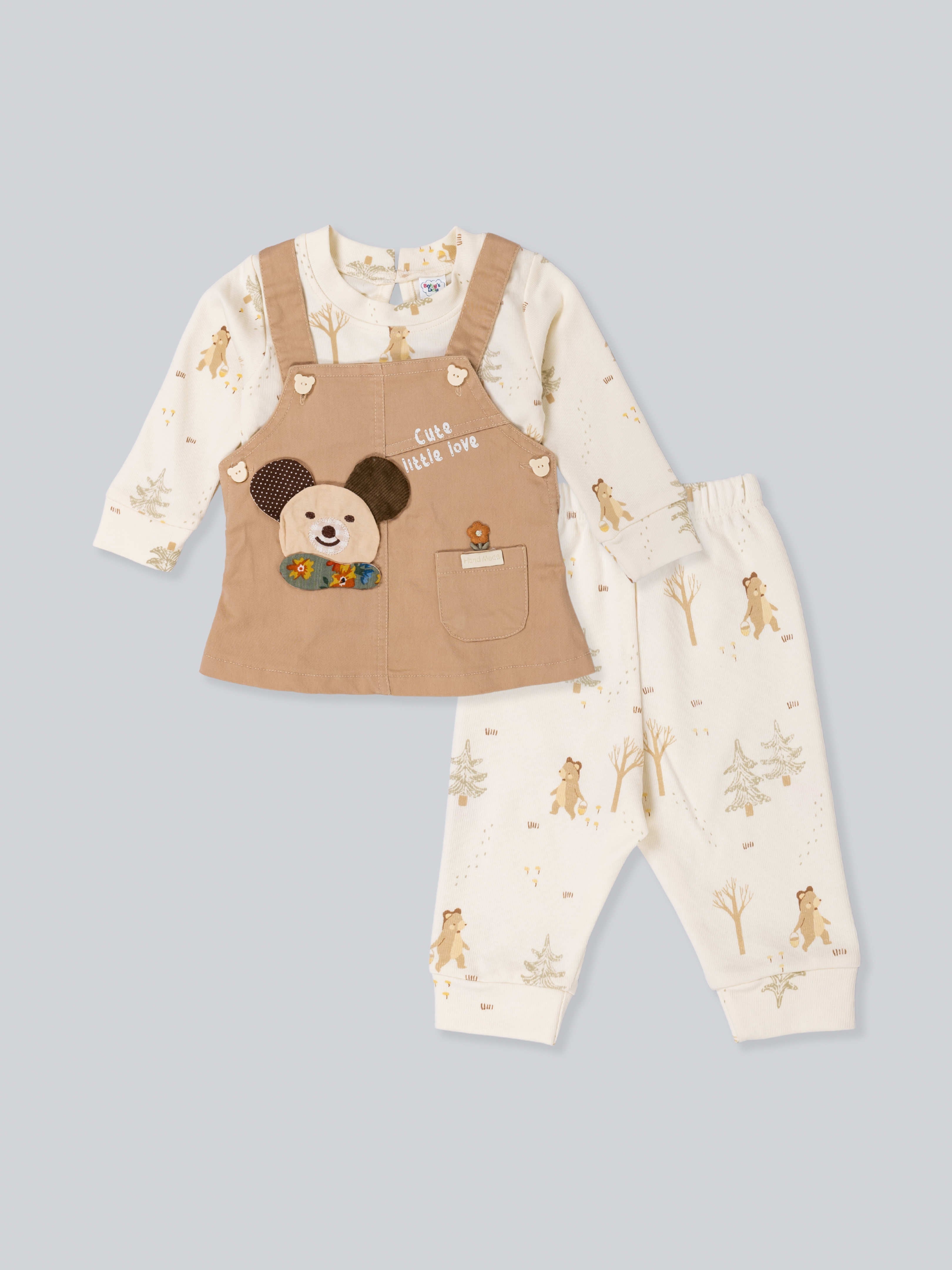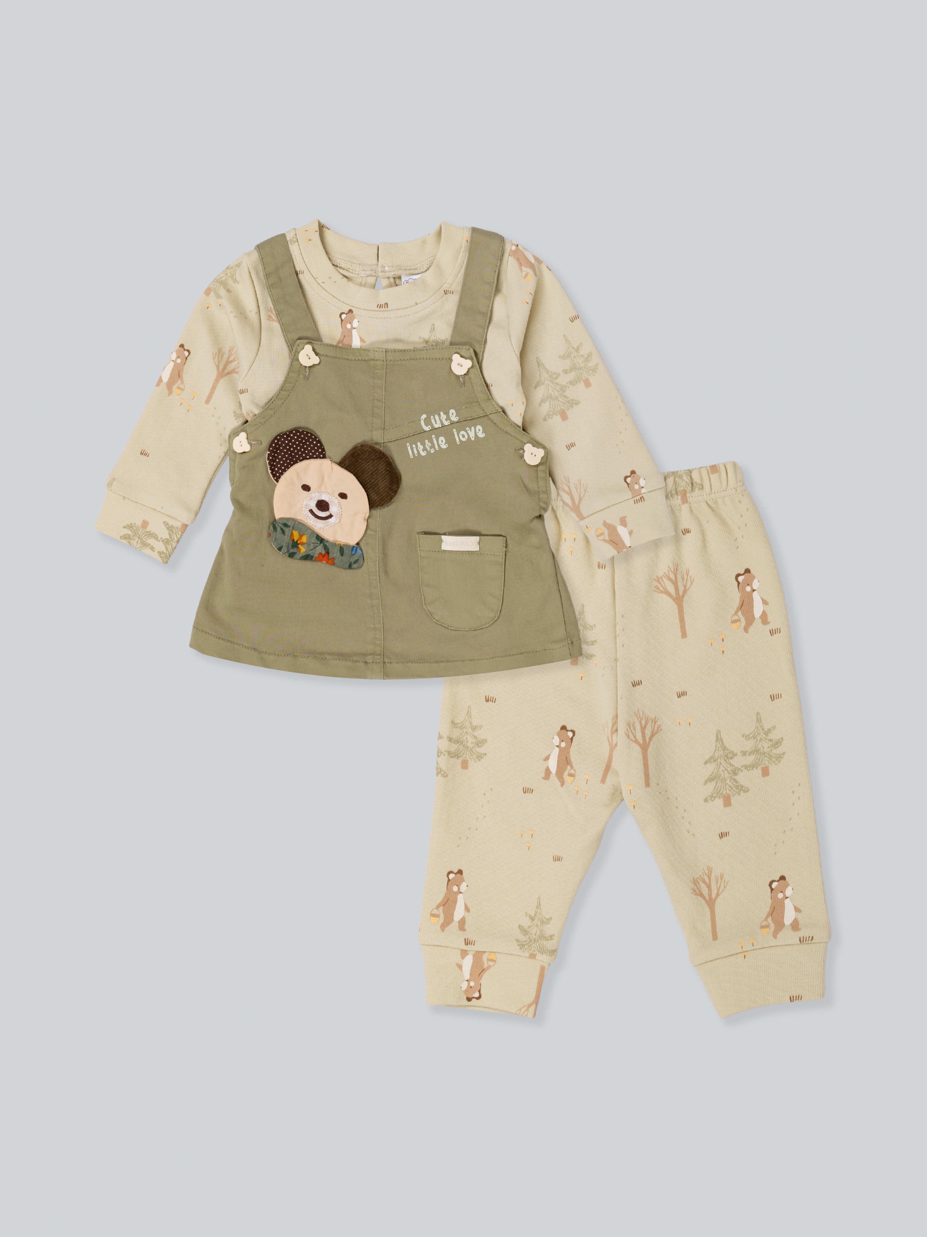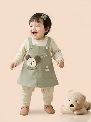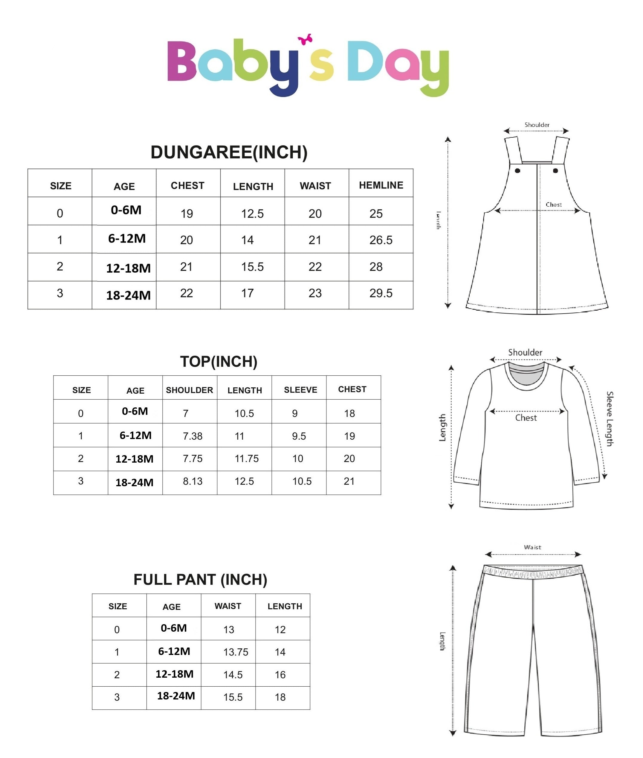 Baby Girls Dunagree + Trousers + long-sleeved T-shirt Set for little explorers. For play, fun and cosy chilling, the comfortable set is simply indispensable. The set can be easily machine washed. Our fashion items impress with proven quality, harmless materials and high-quality workmanship.