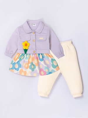 - Baby Girls Casual Printed 3-Piece Clothing Set - Top & Jacket and Legging