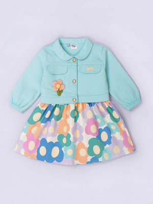 This clothing set consists of Top and Jacket, Legging Green and Pink Casual printed Top ,has a Peterpan collar neck, long sleeves Green and Pink Striped Trousers ,has a slip-on closure