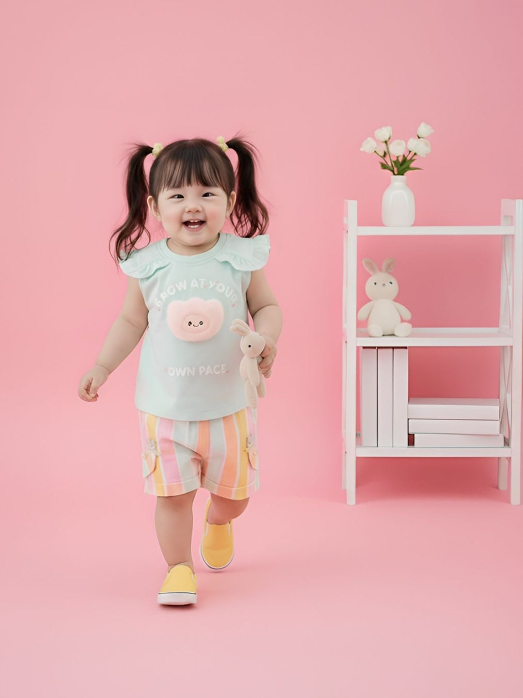 Baby's Day 100% Pure Cotton Half Sleeve Top and Shorts, Clothing, tailored especially for your little girl. this style comfort for active baby girls. Our top and Shorts, Clothing set is made from 100% pure cotton, ensuring a soft, breathable, and skin-friendly experience. It's perfect for all-day wear, They're designed with your child's well-being in mind.
