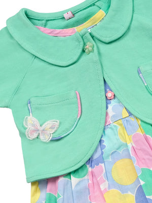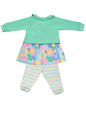 This clothing set consists of Top and Jacket,Legging Green and Pink Casual printed Top ,has a Peterpan collar neck, long sleeves Green and Pink Striped Trousers ,has a slip-on closure