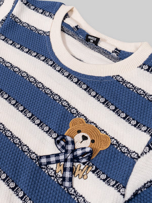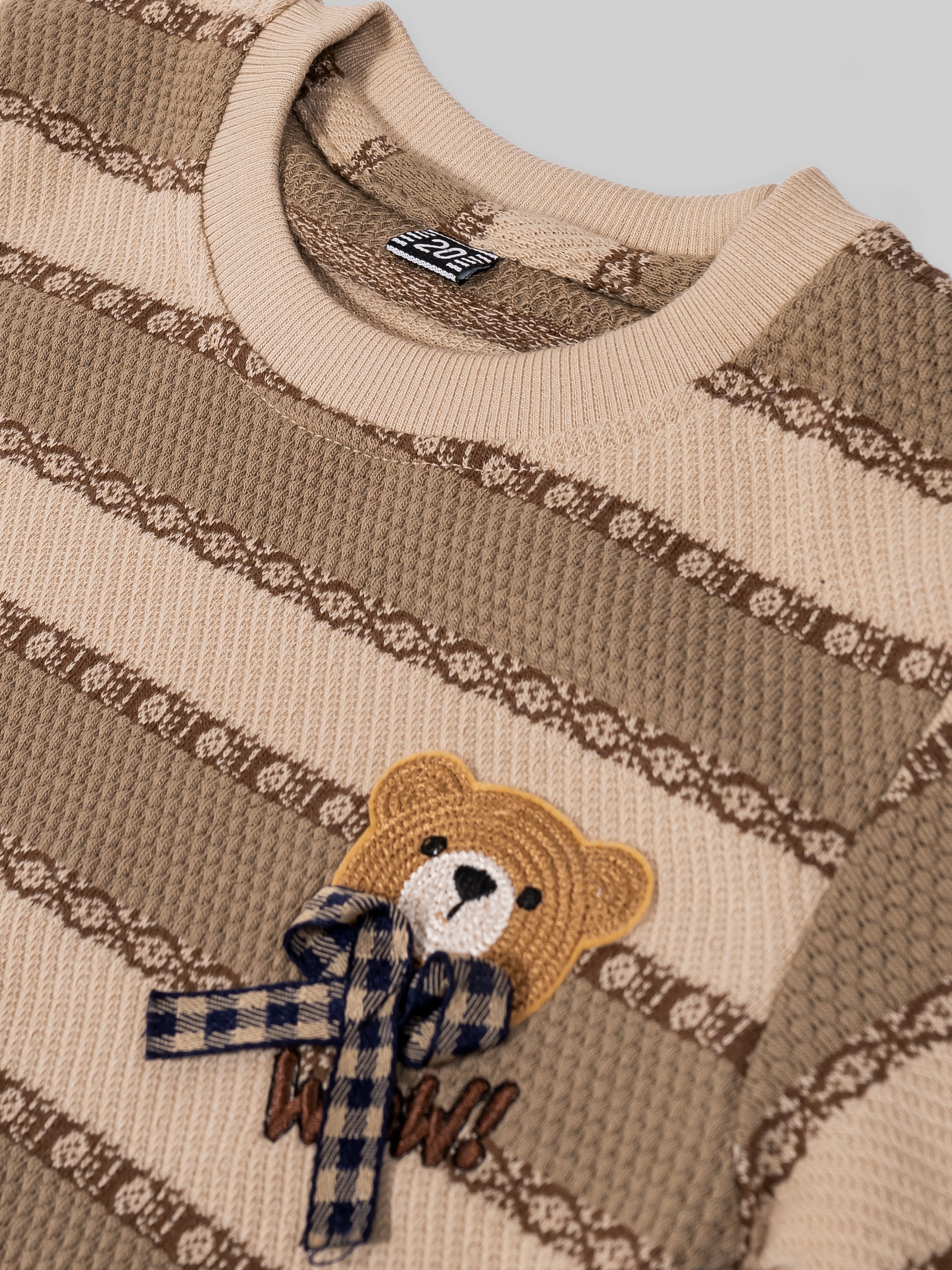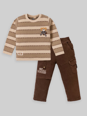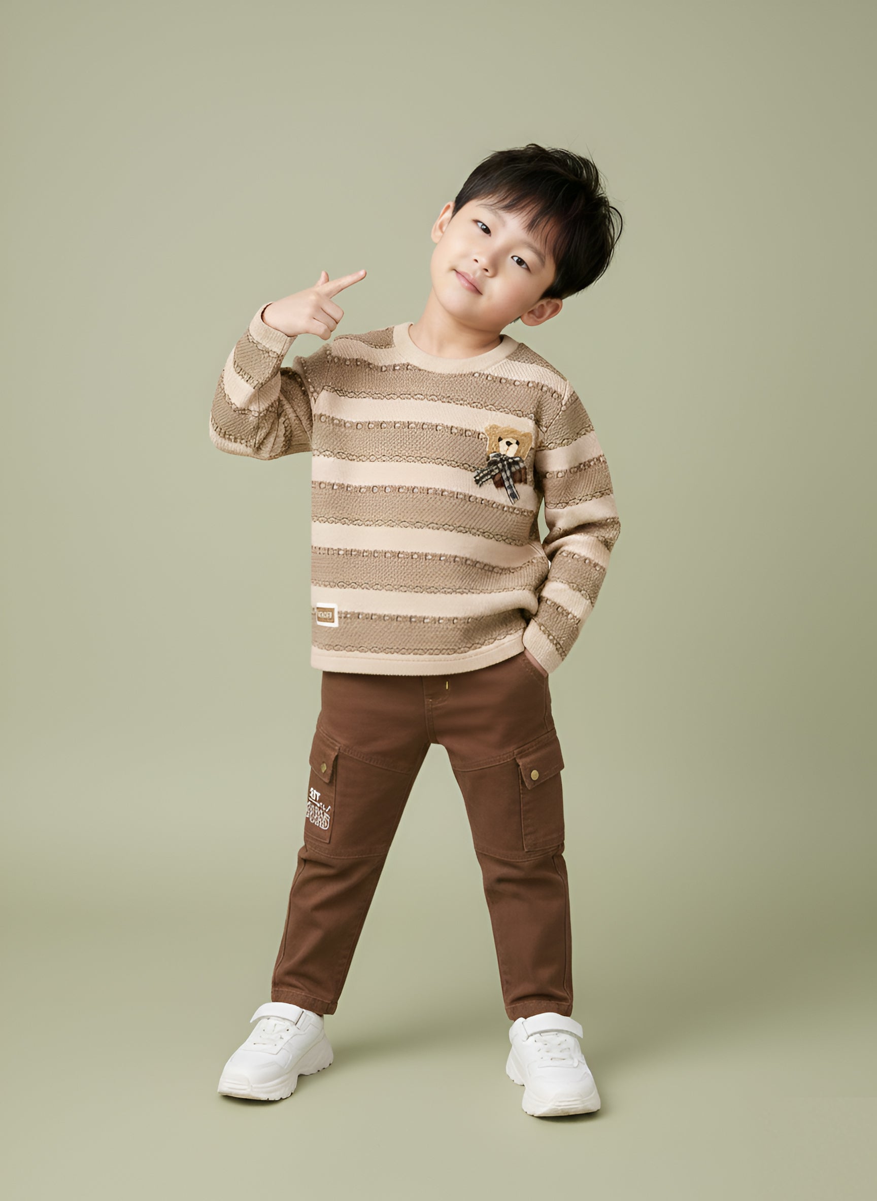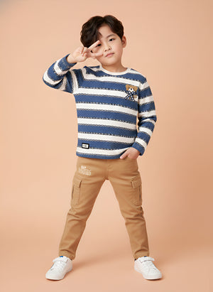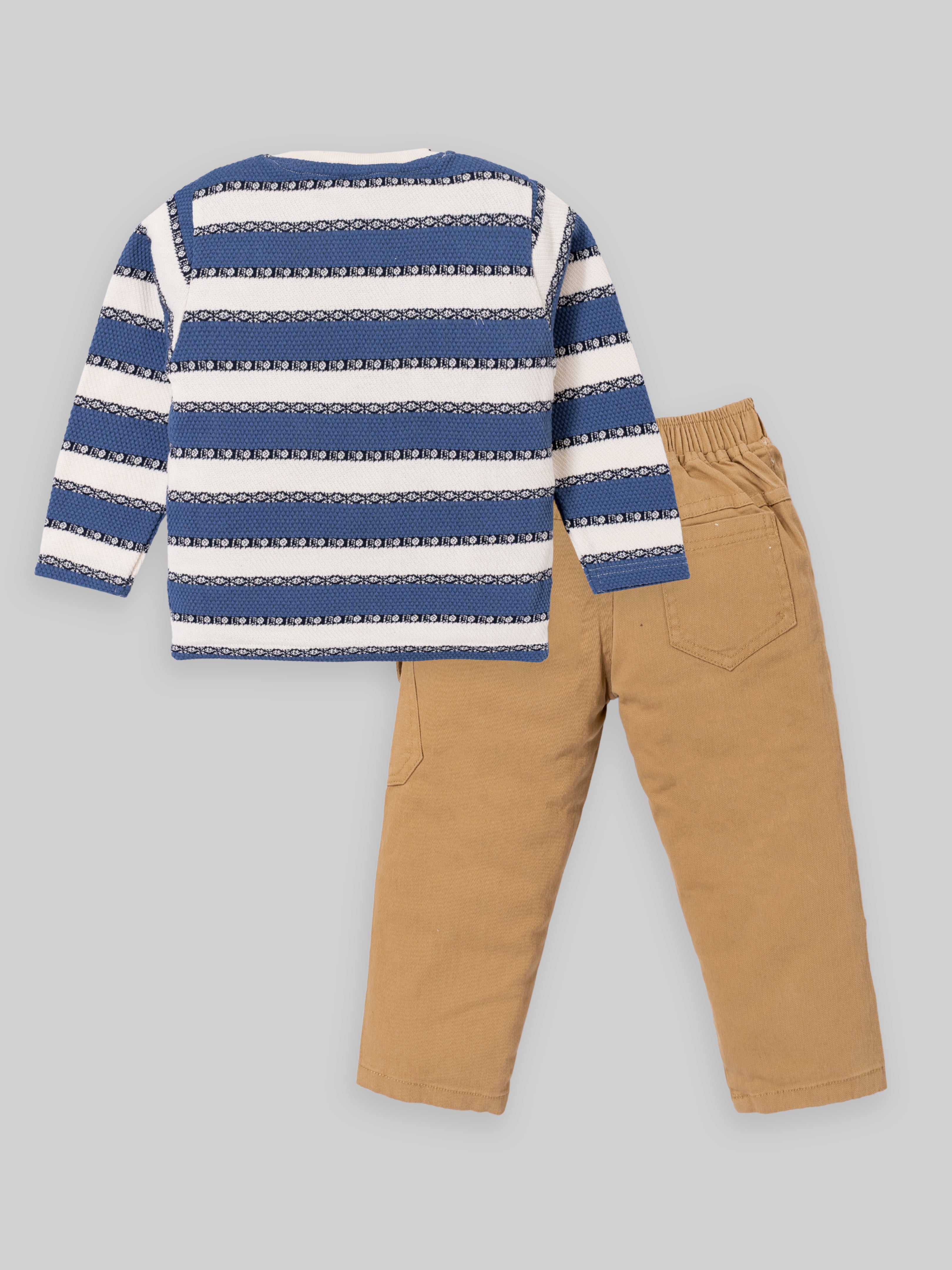 Stripe Pattern Sweater Trendy Boys Casual Clothing Set | Brown & Blue