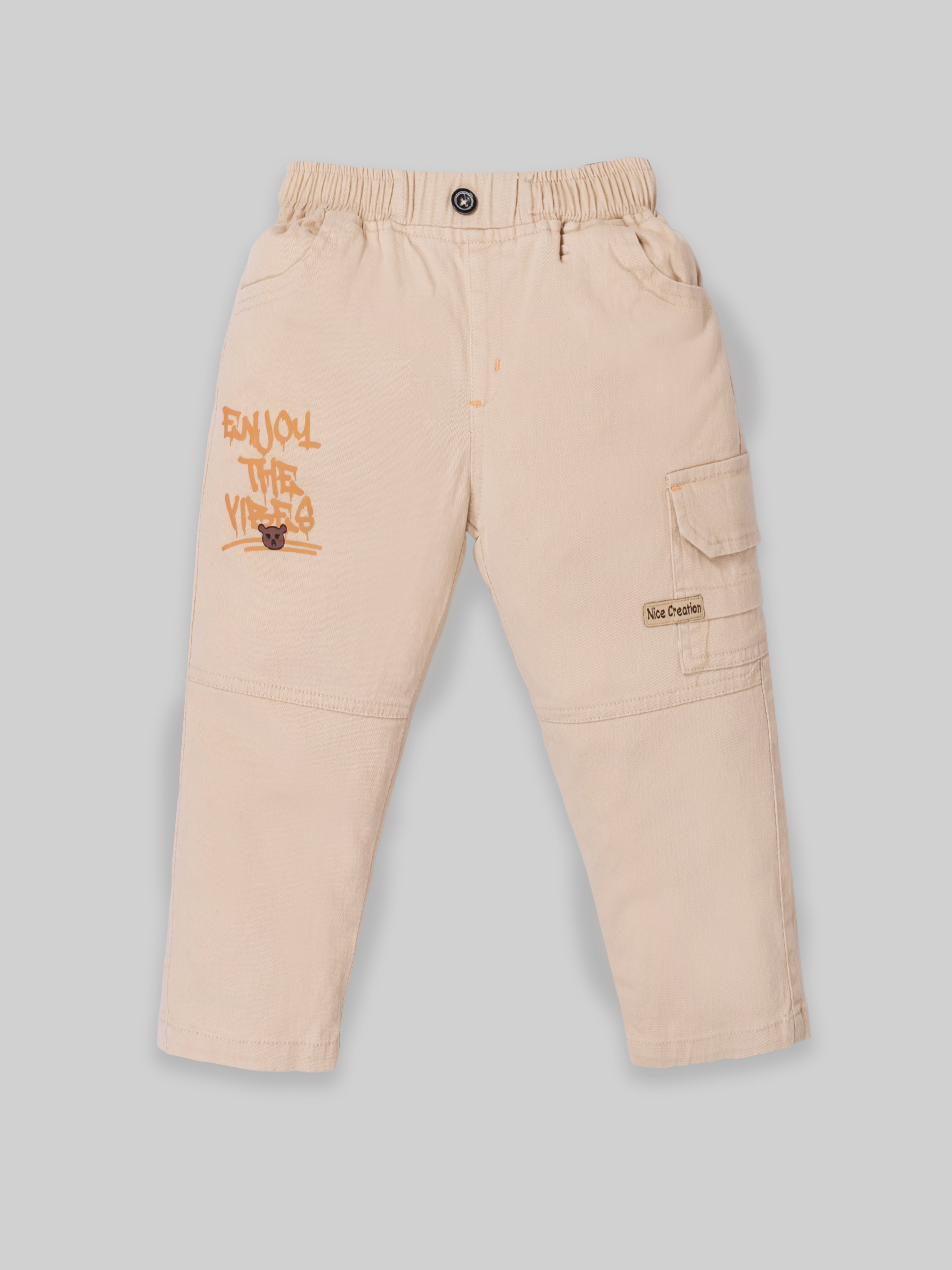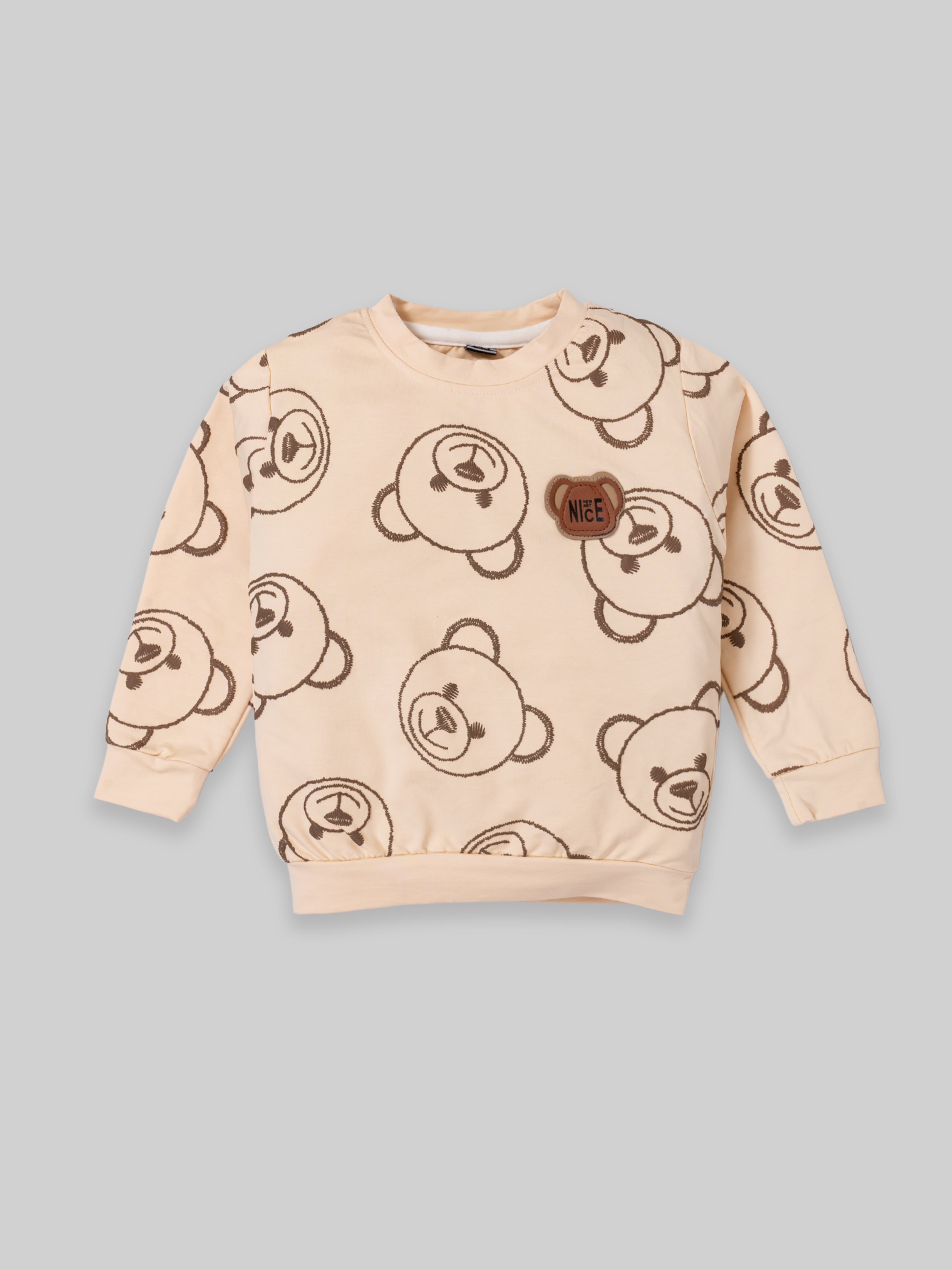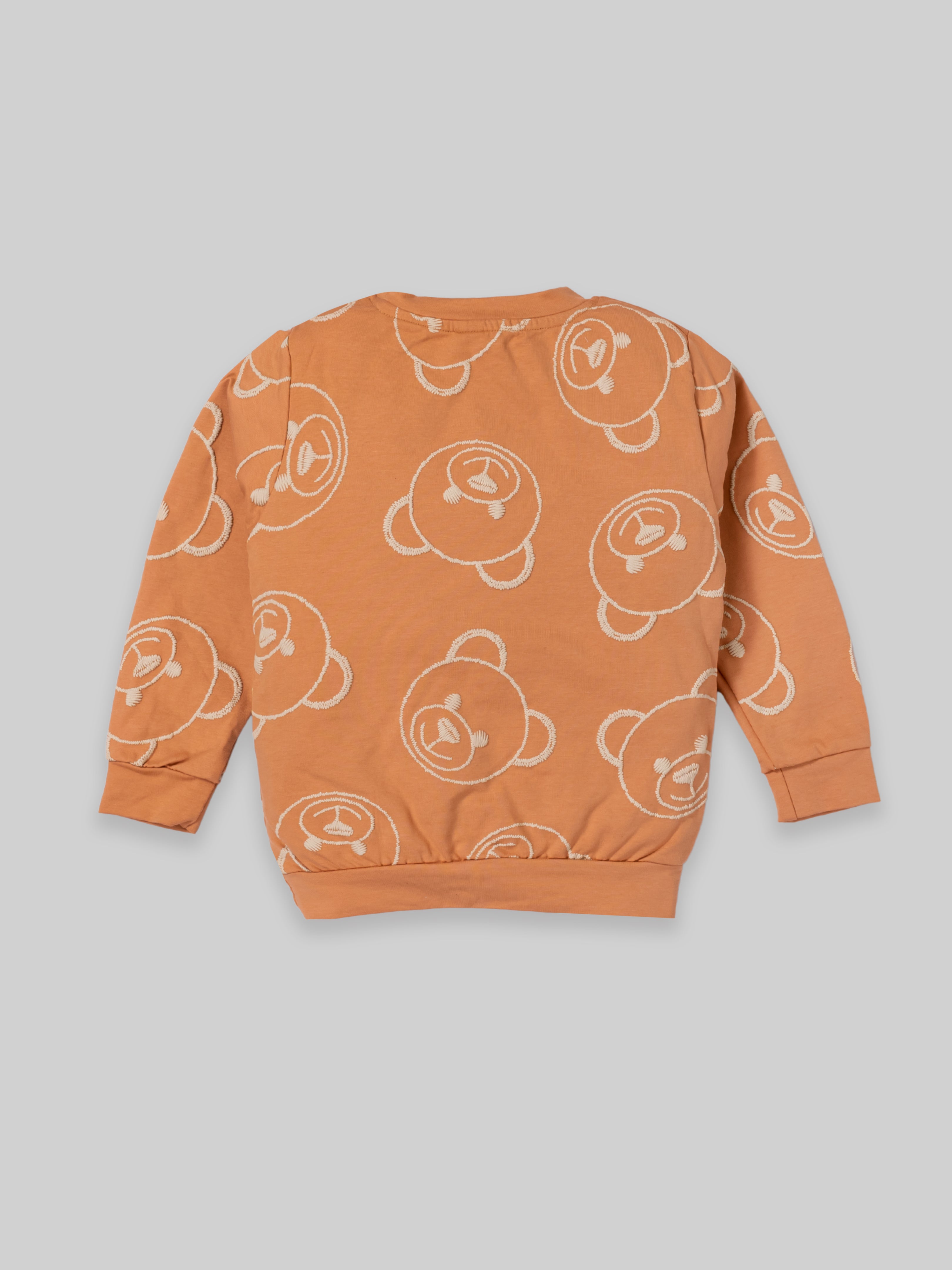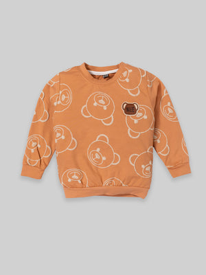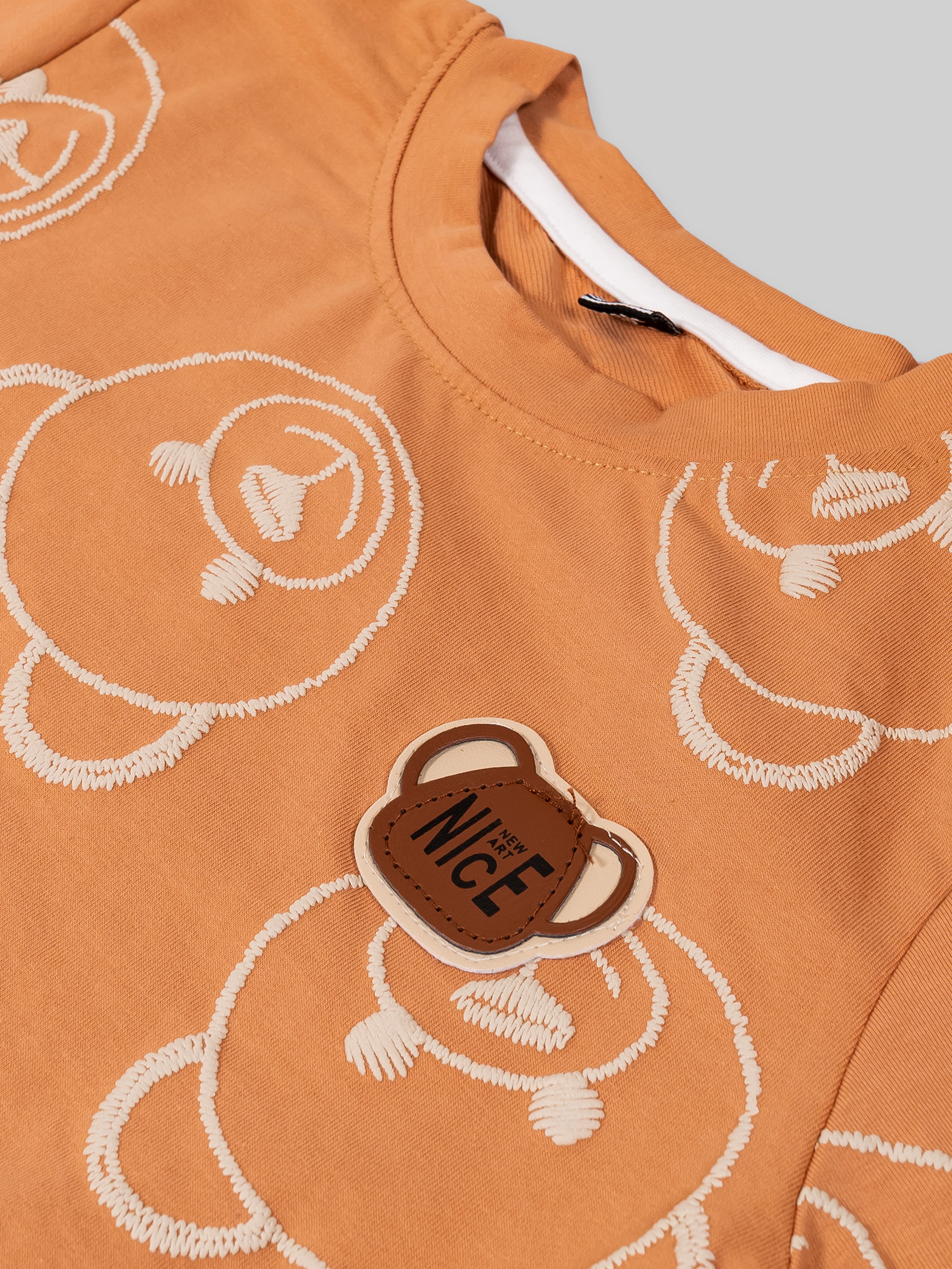 Boys Teddy Bear Printed Sweatshirt & Cargo Pants Set | Cream & Orange