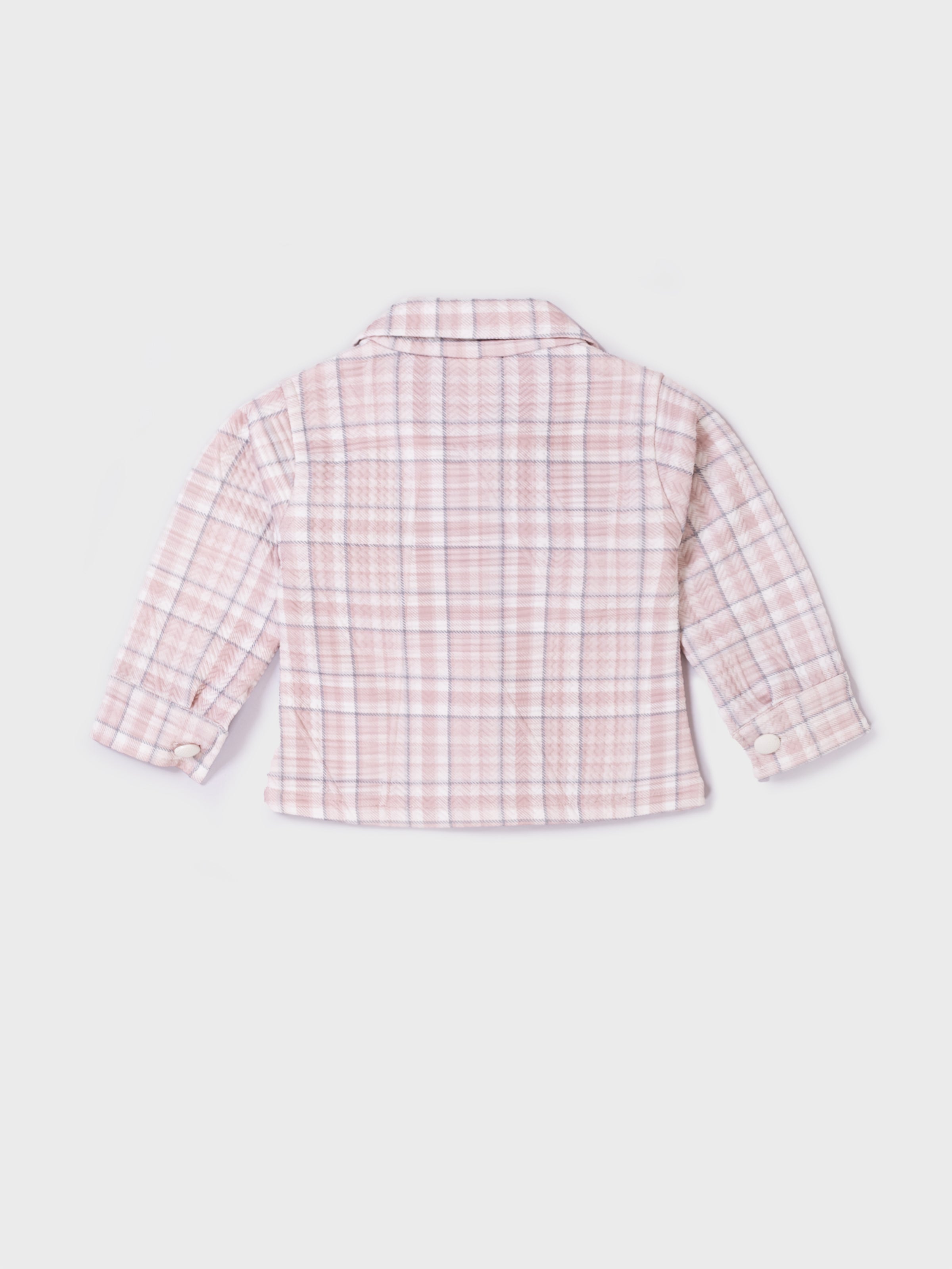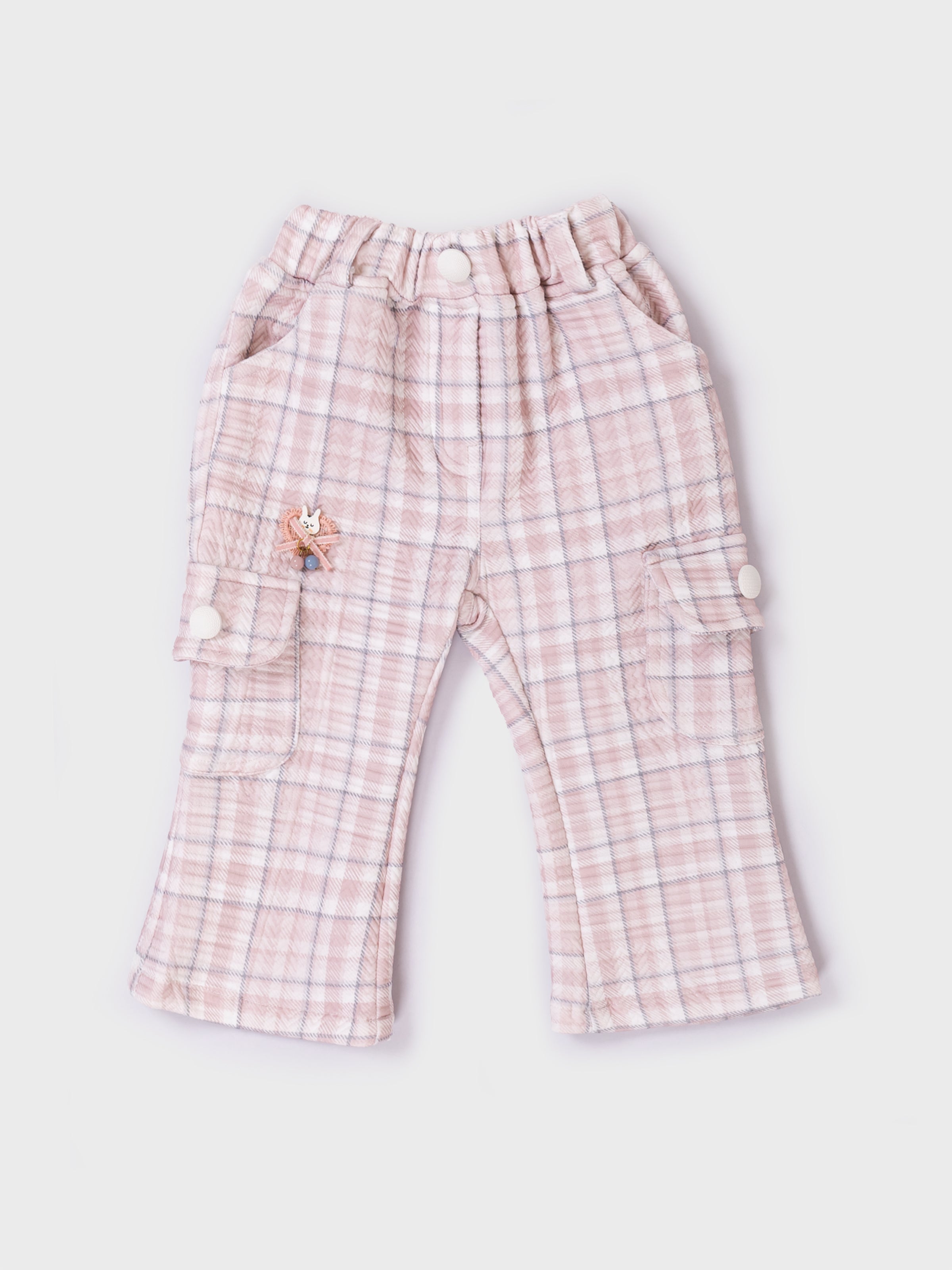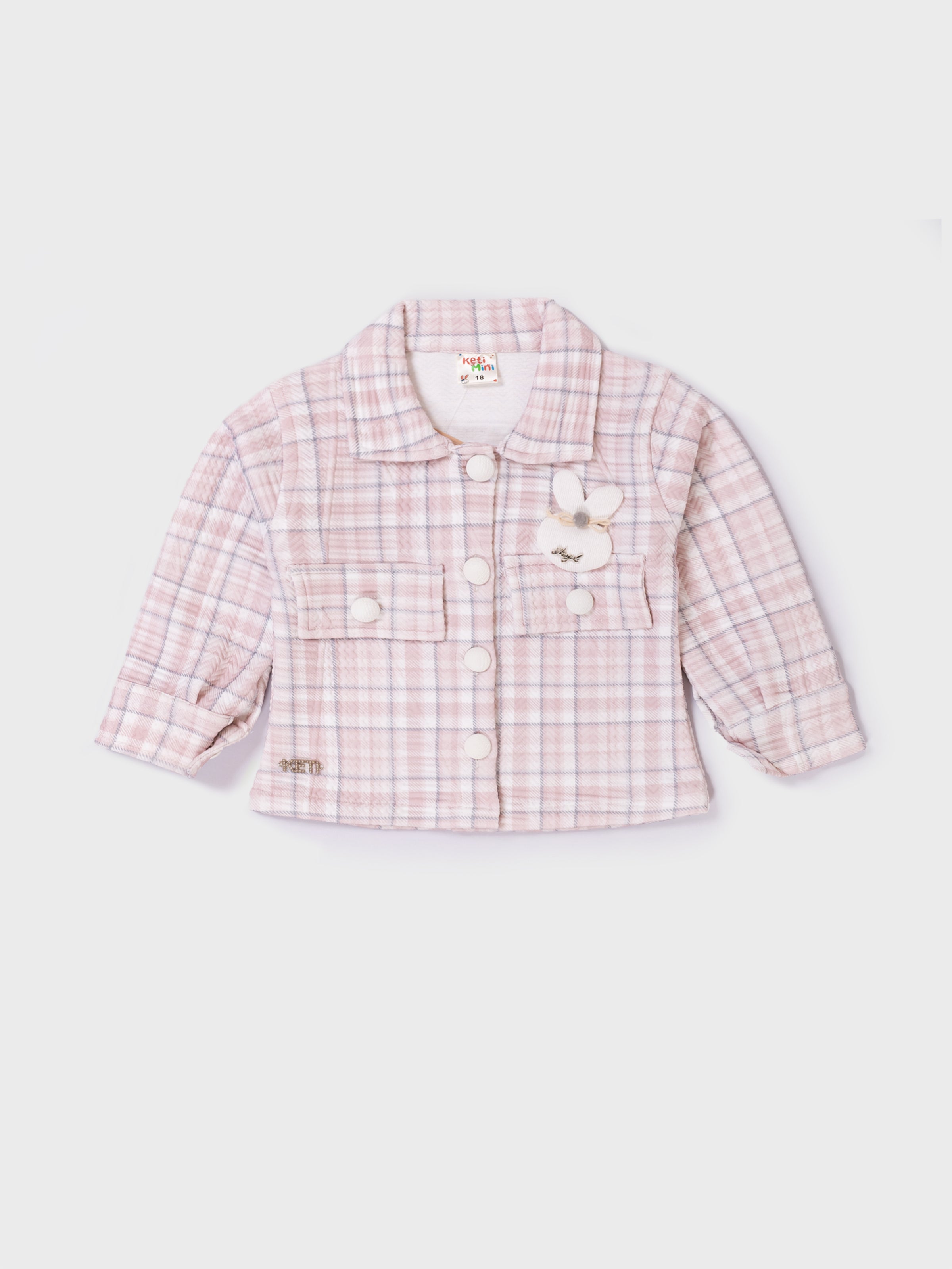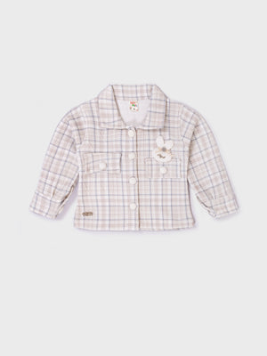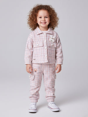 This adorable co-ord set combines comfort and style with a soft plaid jacket paired with matching style pants. Made from a cozy, warm fabric, the outfit is perfect for cooler seasons. The jacket features cute pom-pom buttons and a sweet bunny applique, adding a playful touch. The relaxed-fit pants include side pockets for added utility and charm. Ideal for outings, photoshoots, and everyday wear, this set delivers both fashion and comfort for little ones.