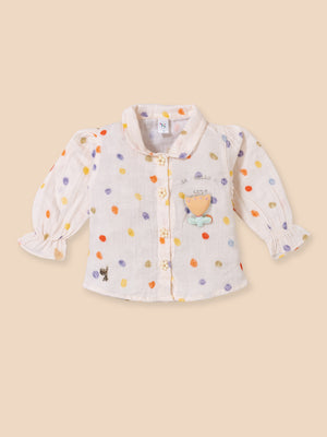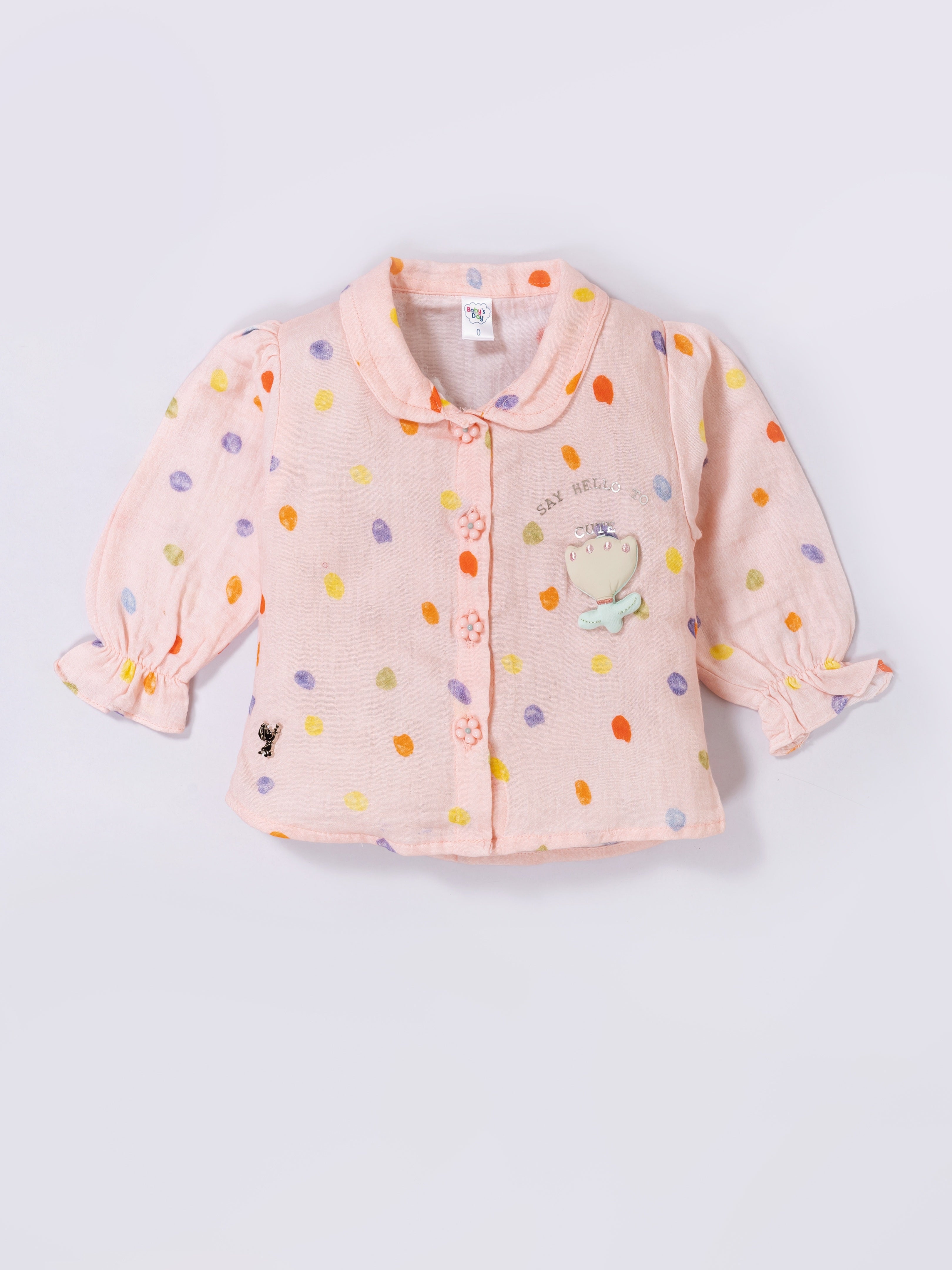 - Soft cotton polka-dot top with full sleeves and a cute flower patch