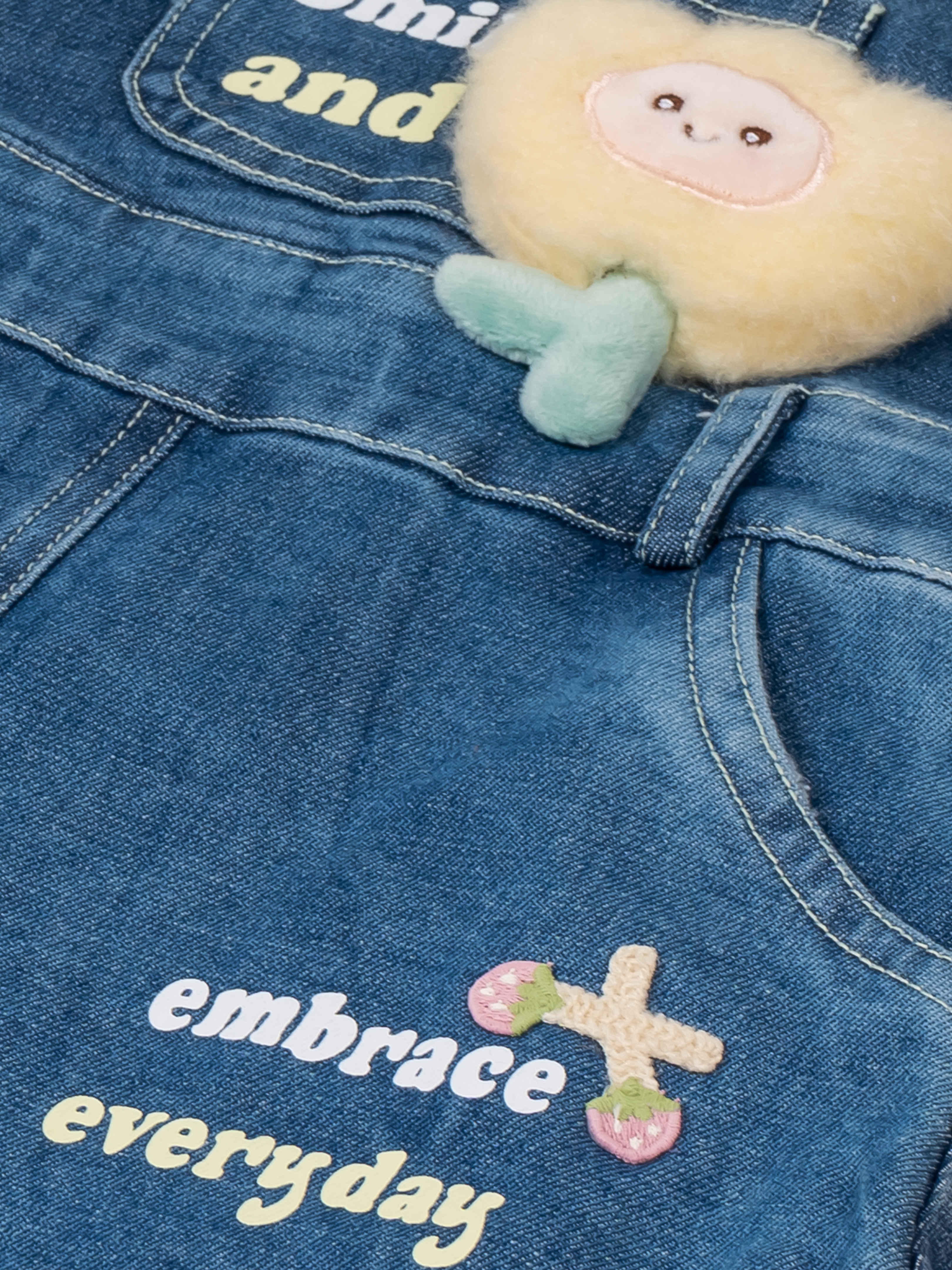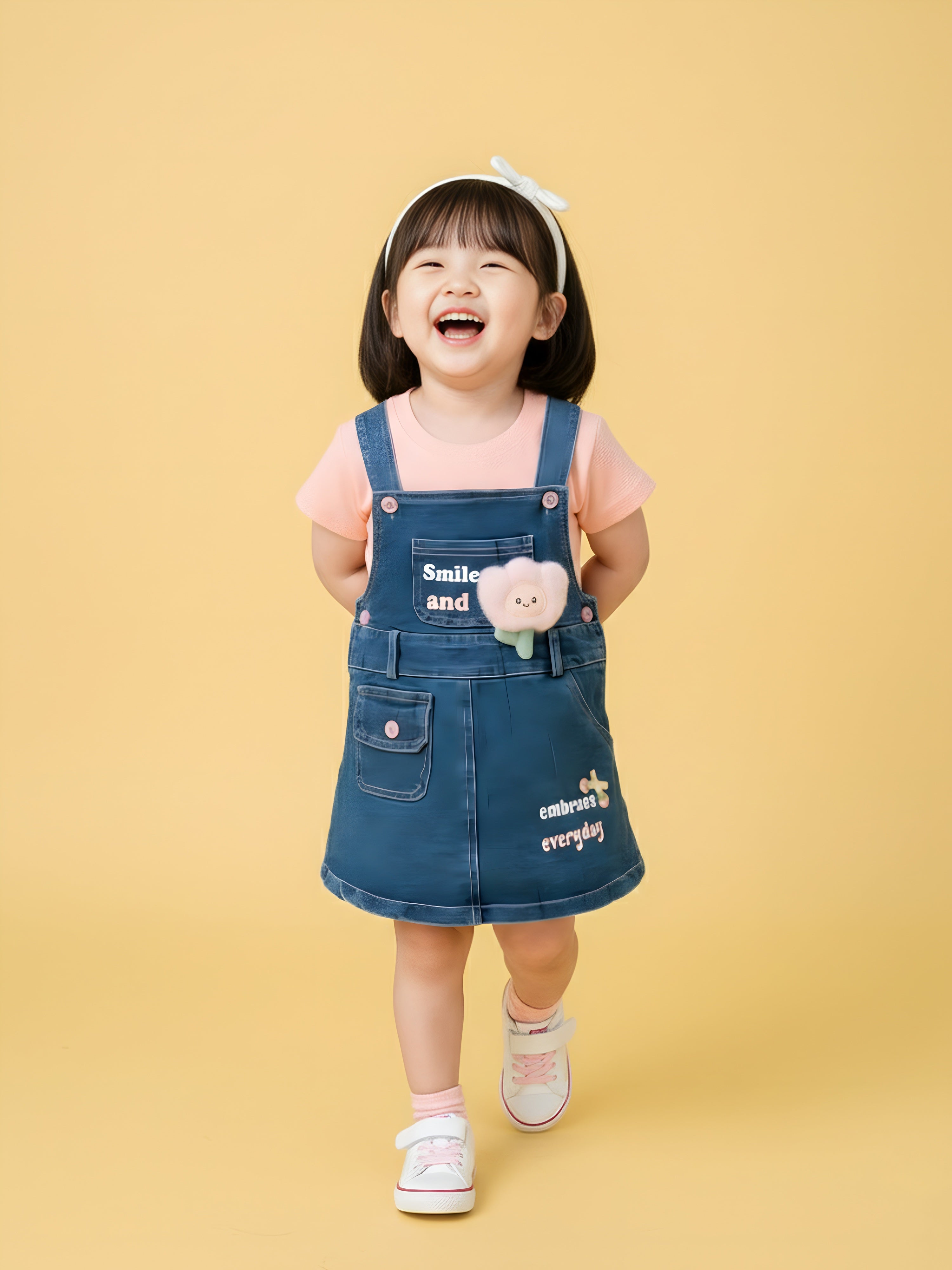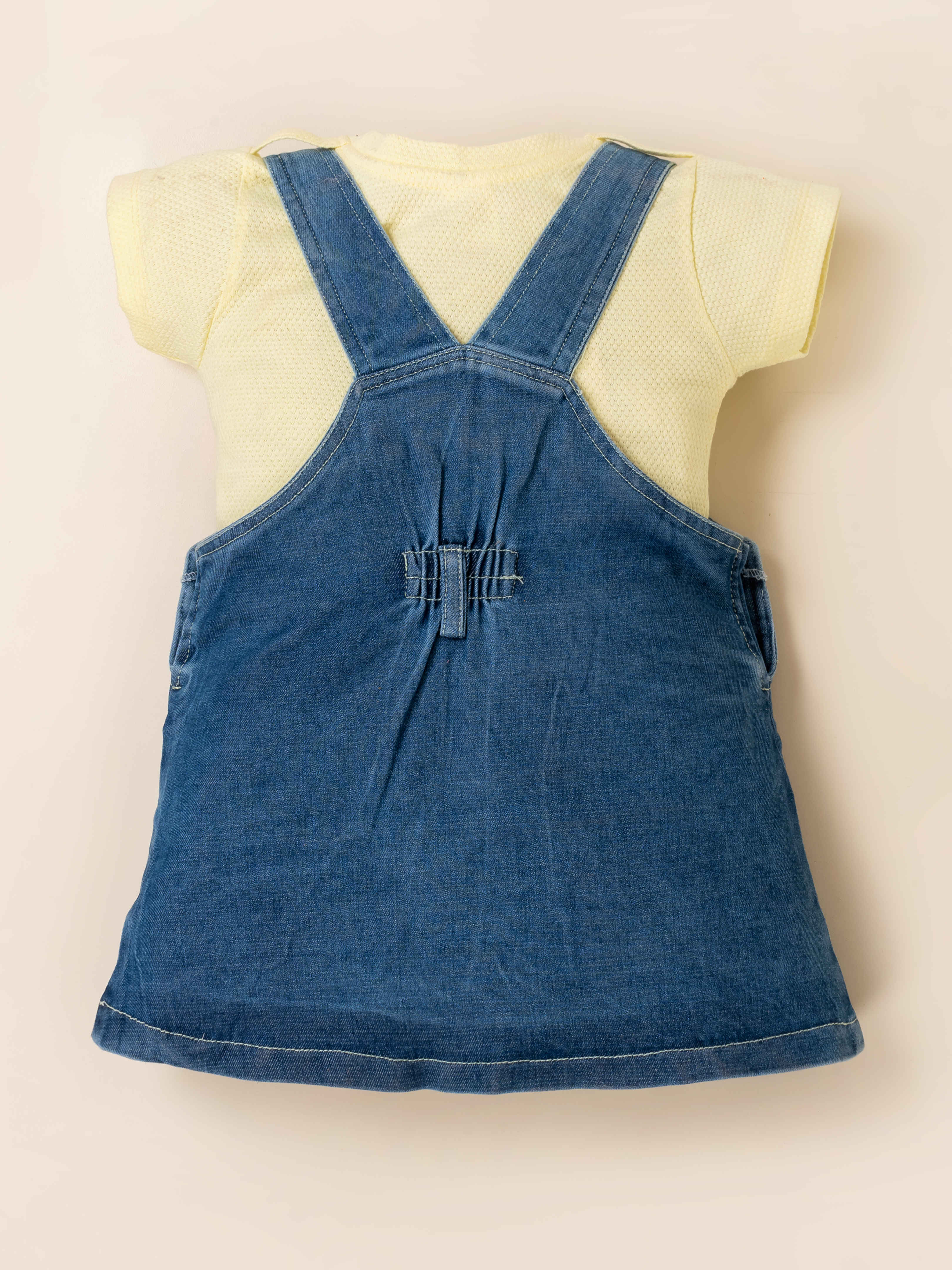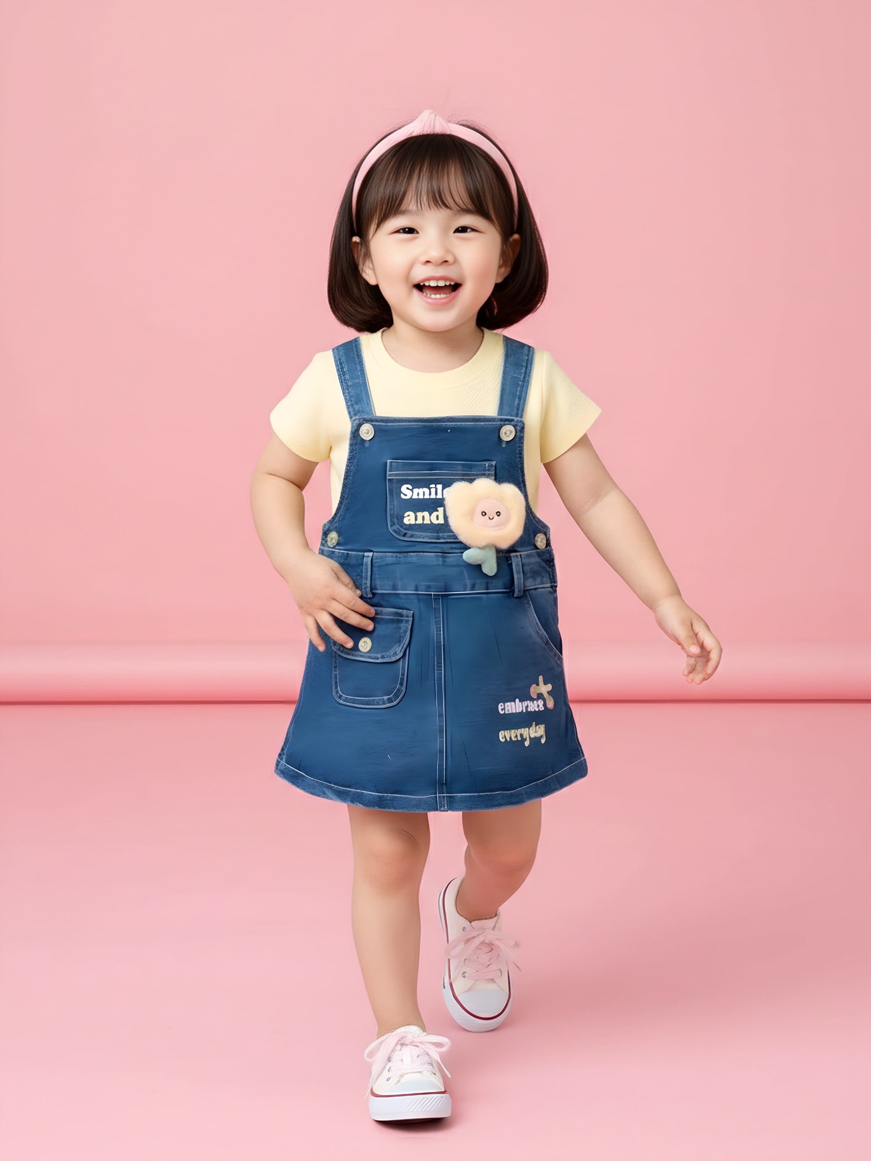 Add a dose of charm to your little one’s wardrobe with this adorable denim pinafore dress set. Paired with a soft pink textured T-shirt, this outfit is perfect for playdates, outings, and everyday wear. The denim dress features sweet printed messages, stylish button details, and a fluffy flower applique that kids will absolutely love. Comfortable, breathable, and easy to move in, it’s a go-to outfit for all-day cuteness and comfort