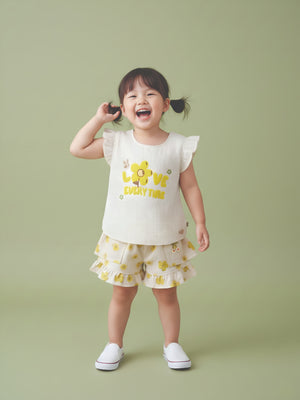 Girls’ Floral Ruffle Sleeve Top & Printed Shorts Set