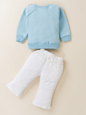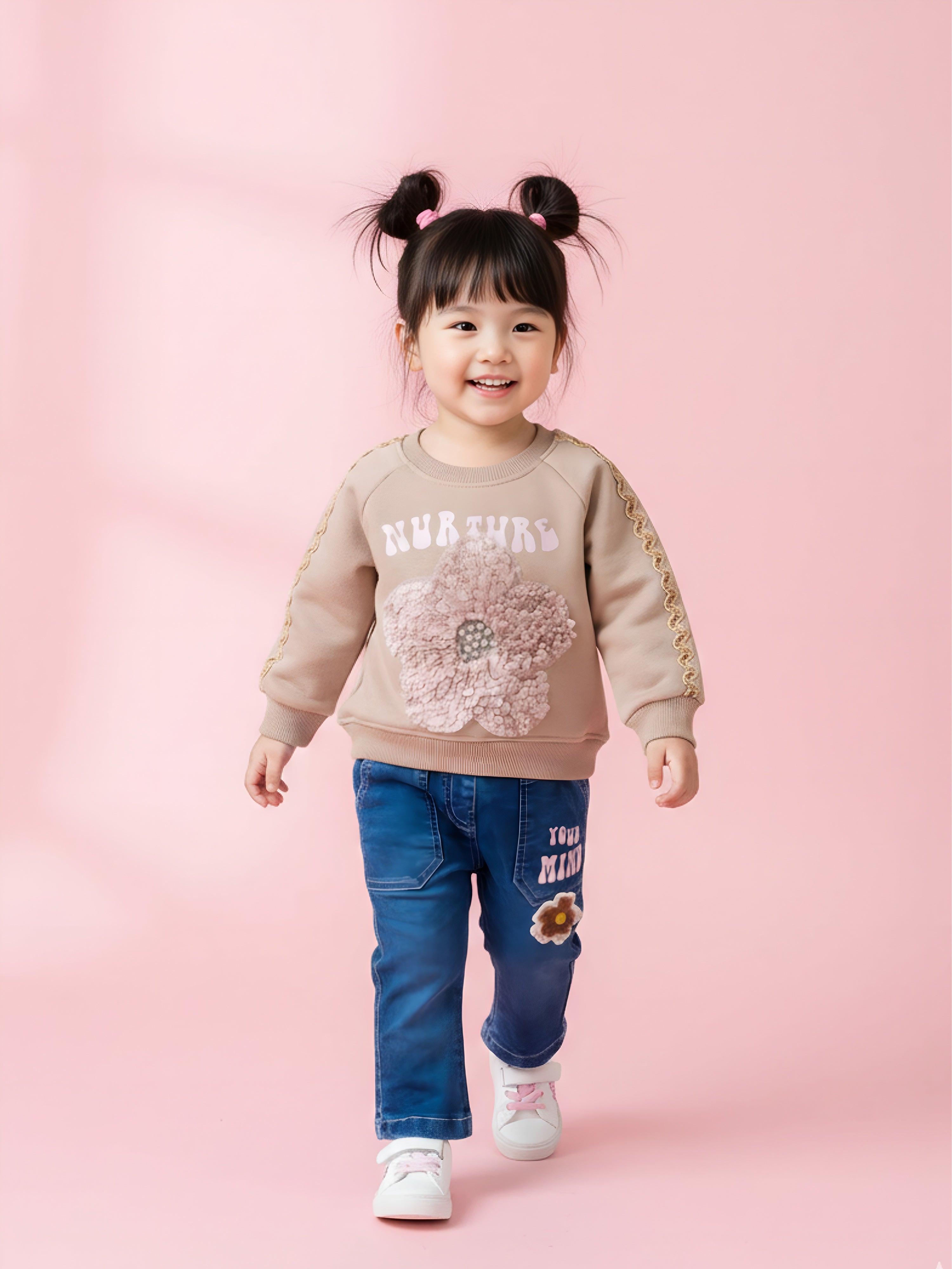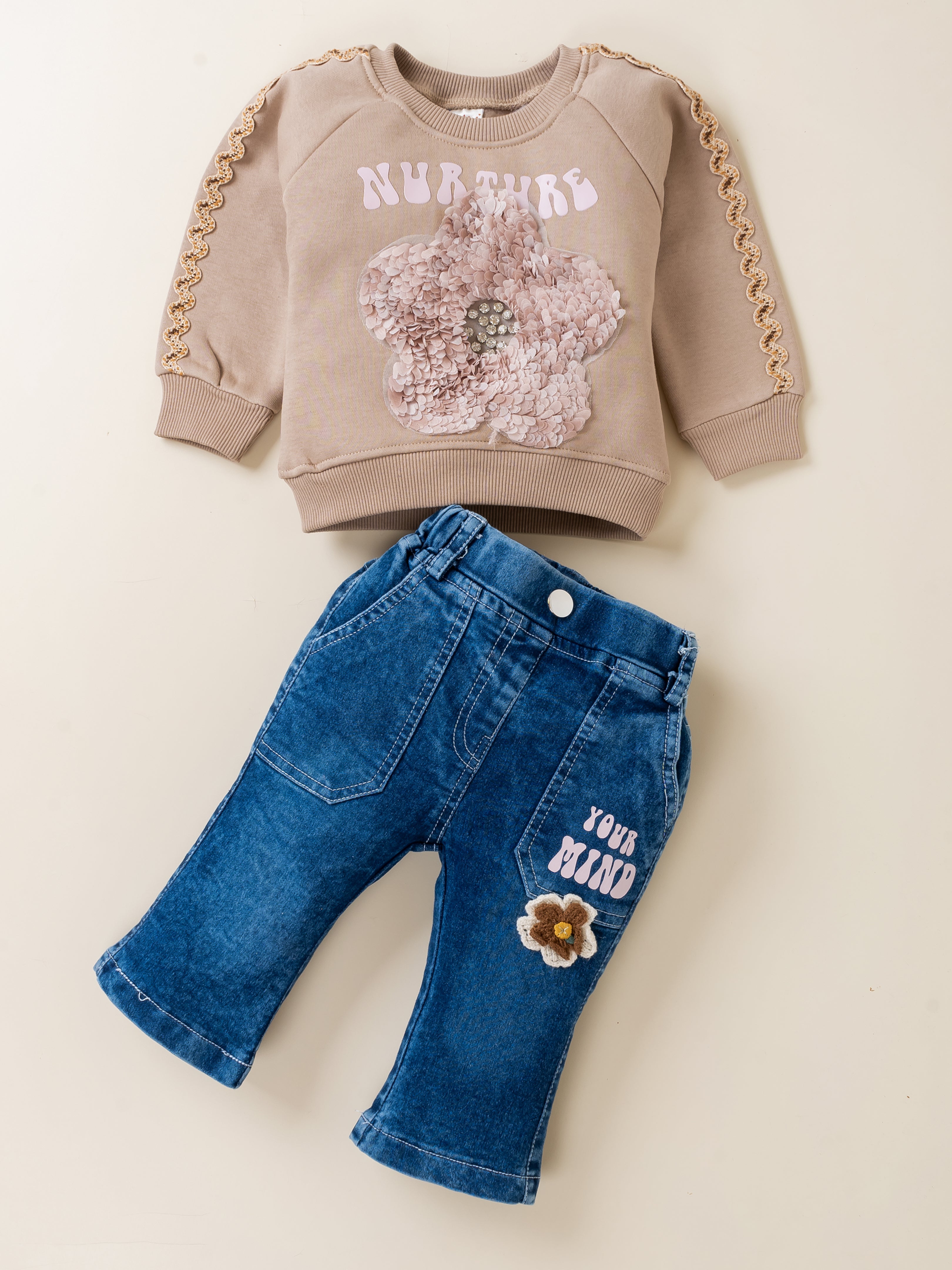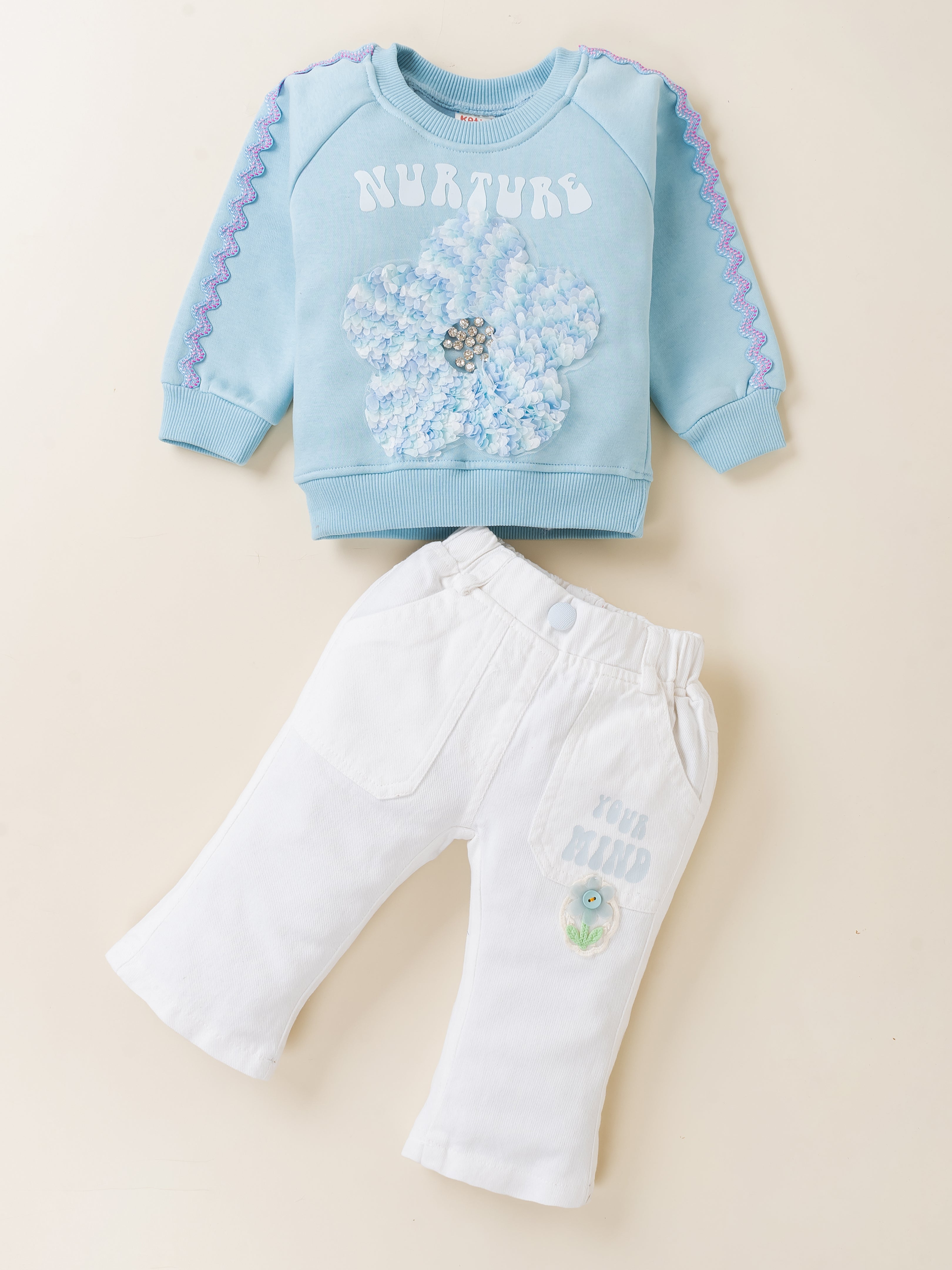 Keep your little one cozy and stylish with this adorable Keti Mini baby girls winterwear set. Featuring a soft full-sleeve sweatshirt with beautiful floral applique work paired with comfortable jeans or pants, this outfit is perfect for everyday winter wear. Designed for warmth, comfort, and cute appeal, it’s ideal for outings, playtime, and casual occasions