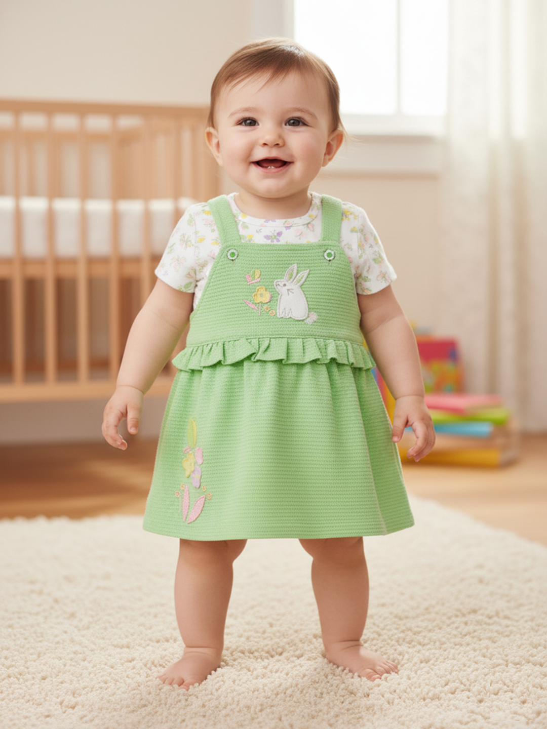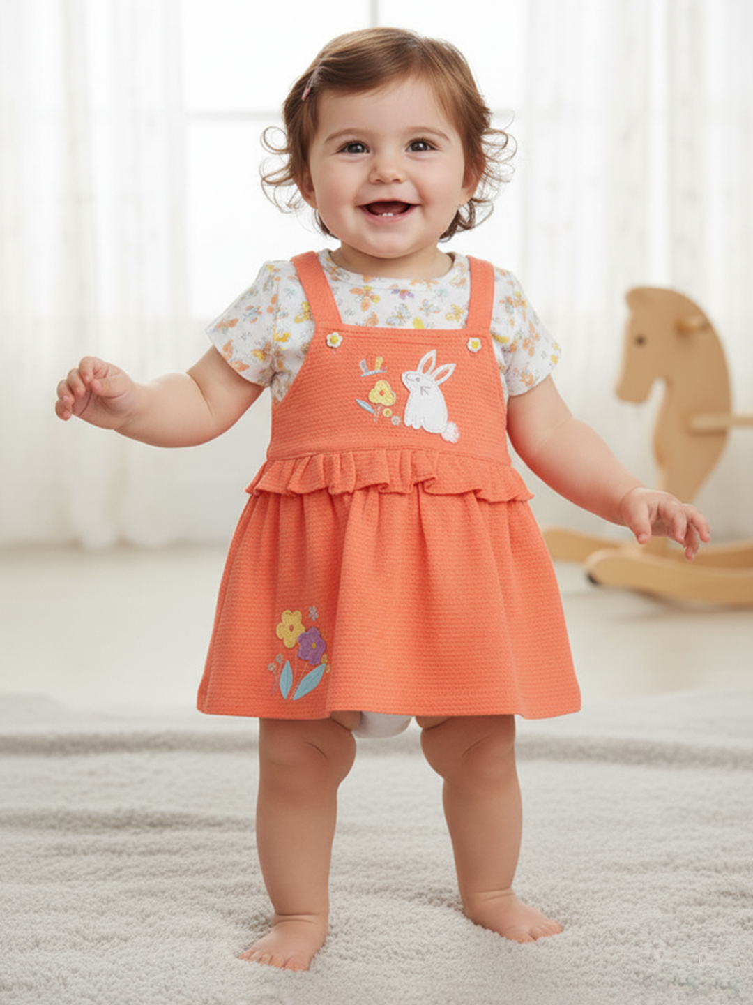 BABY'S DAY Dungaree Set for Baby Girls/Romper Baby Suit Dungaree Jumpsuit Outfits for Baby Girls/Baby Clothes Set Baby dress Romper Dungaree Dress