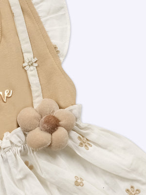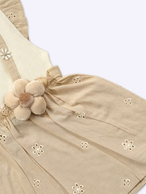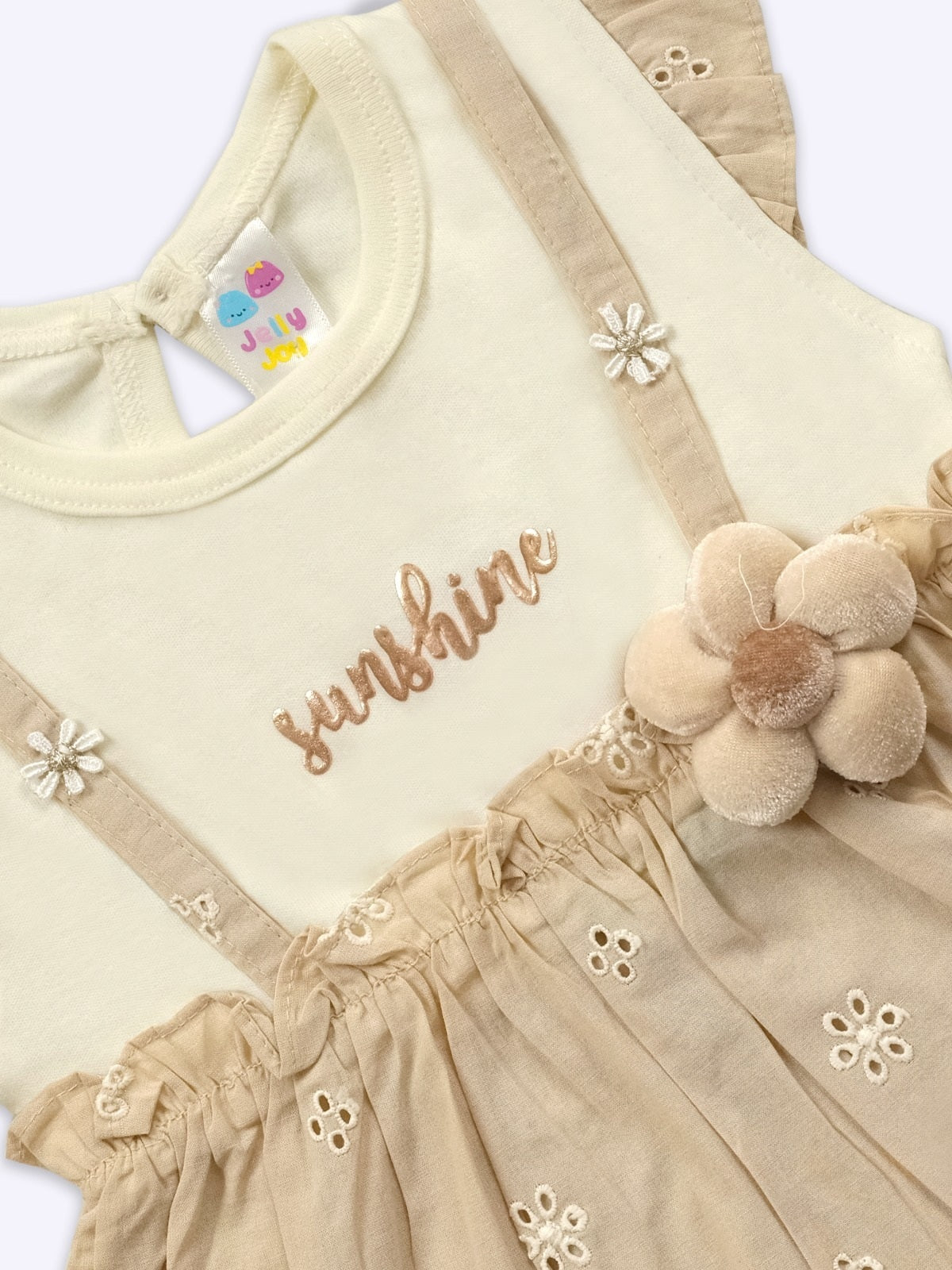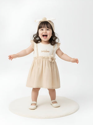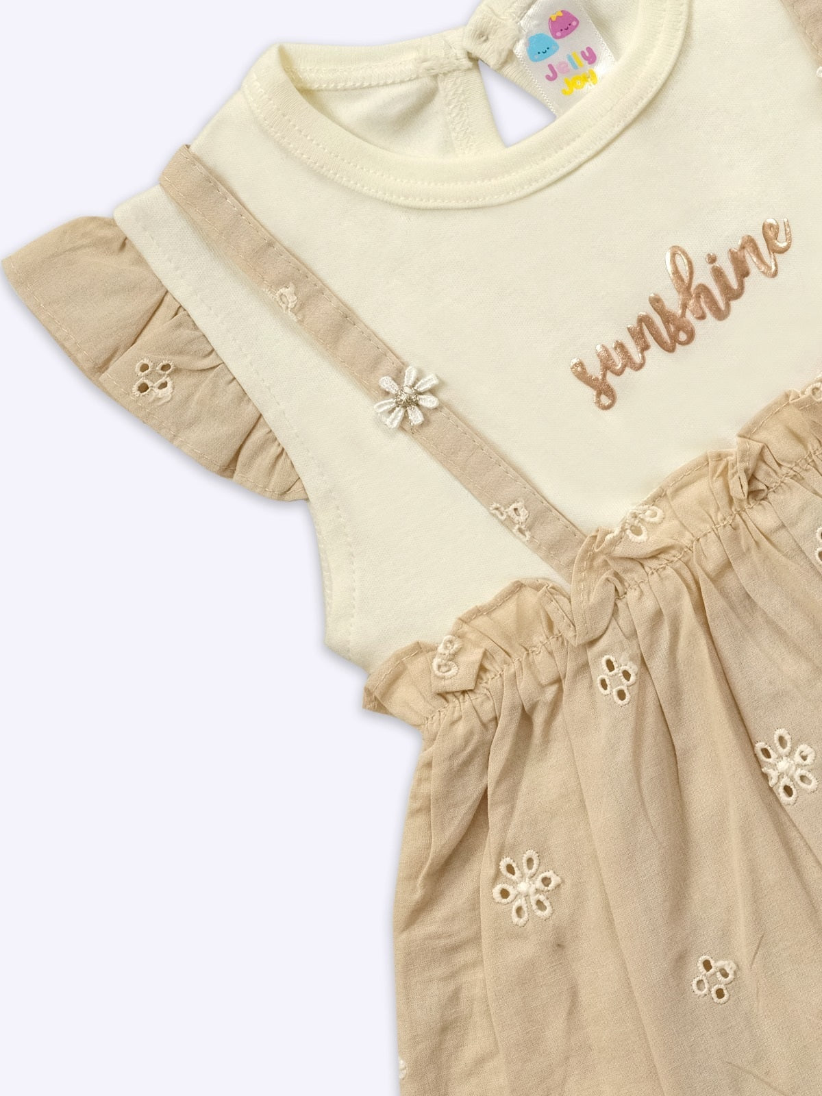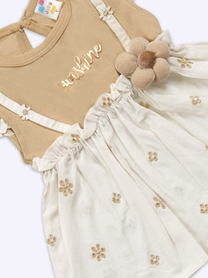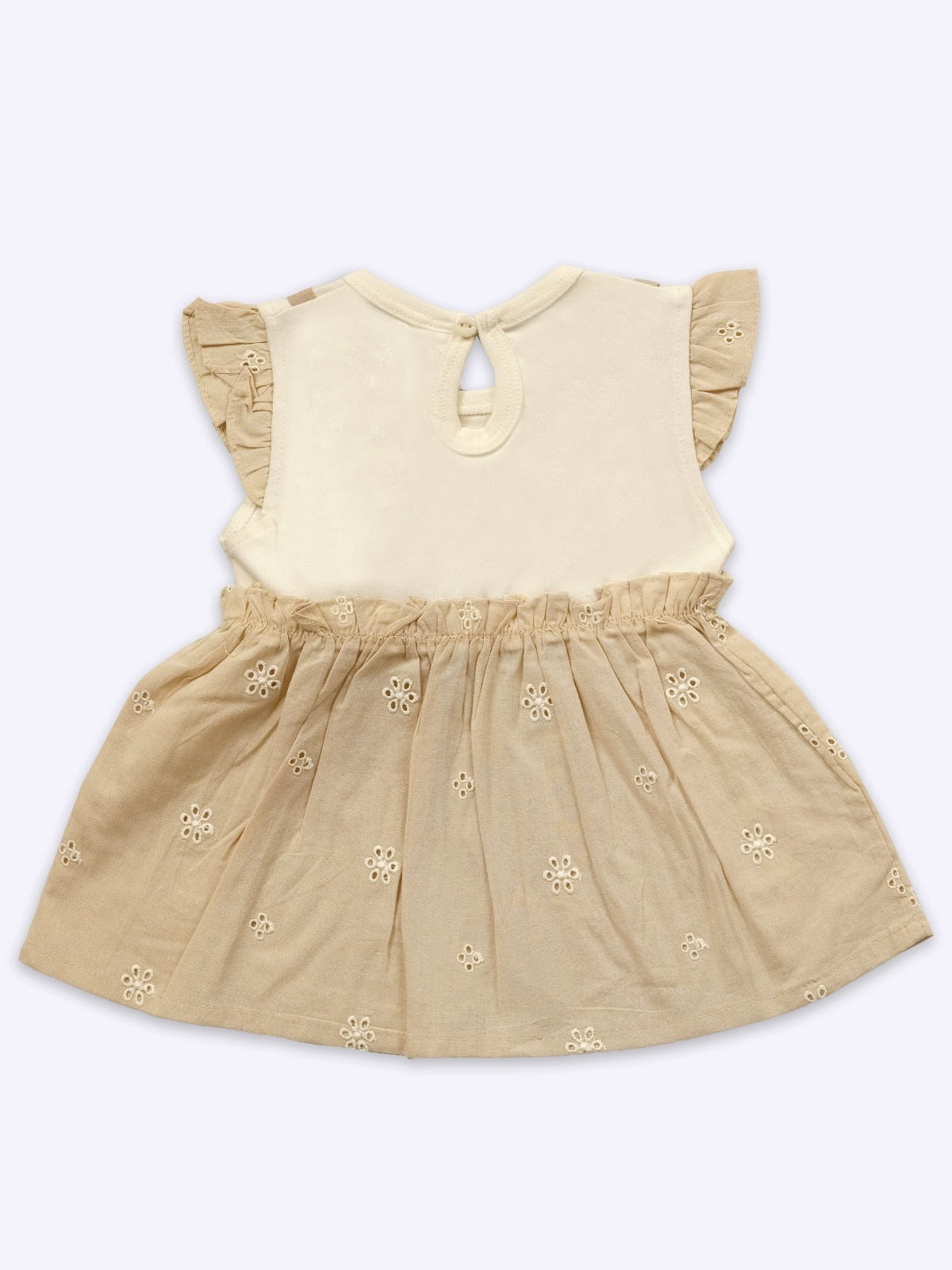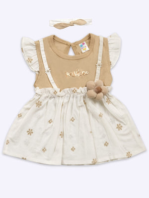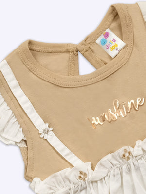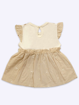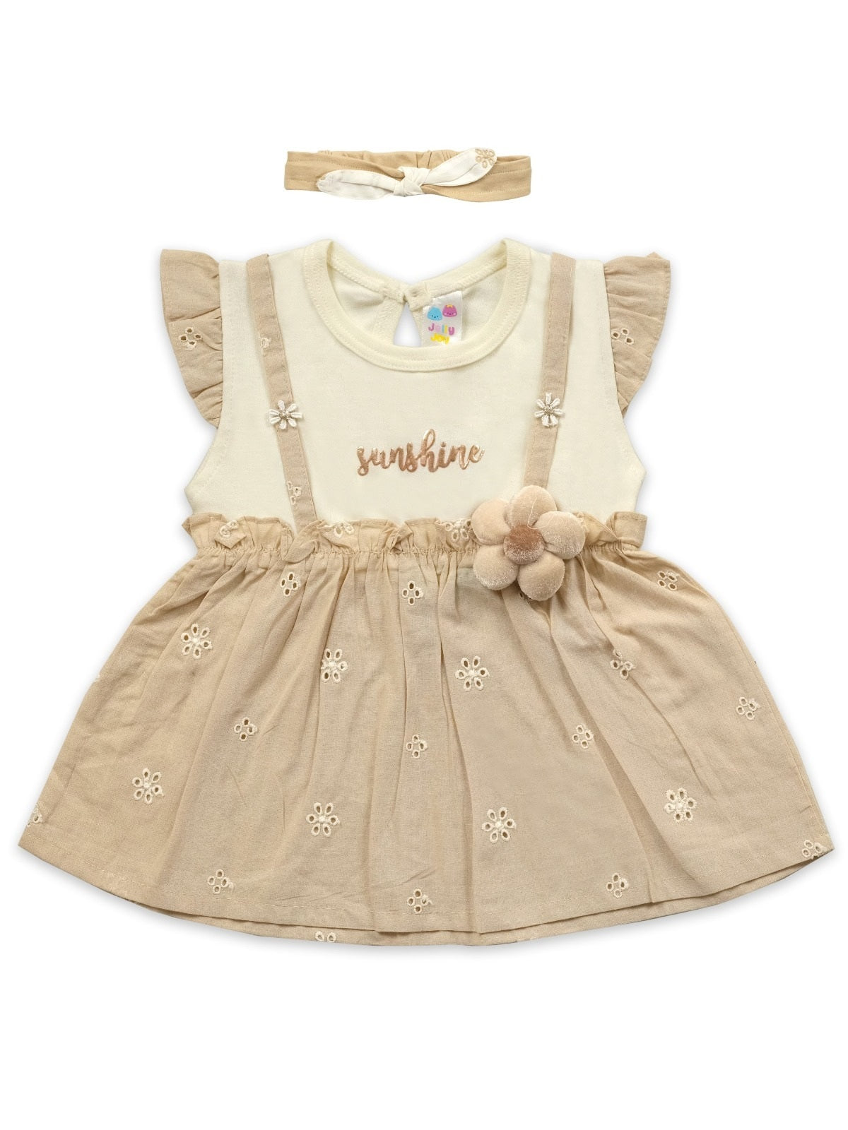 JELLY JOY Baby Girls Princess Style Flared Casual Printed Ruffle Sleeveless Girls Cream Cotton Dress Party Wear Frock And Dresses