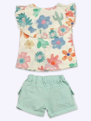 Floral Printed Sleeveless Top & Shorts Clothing Set