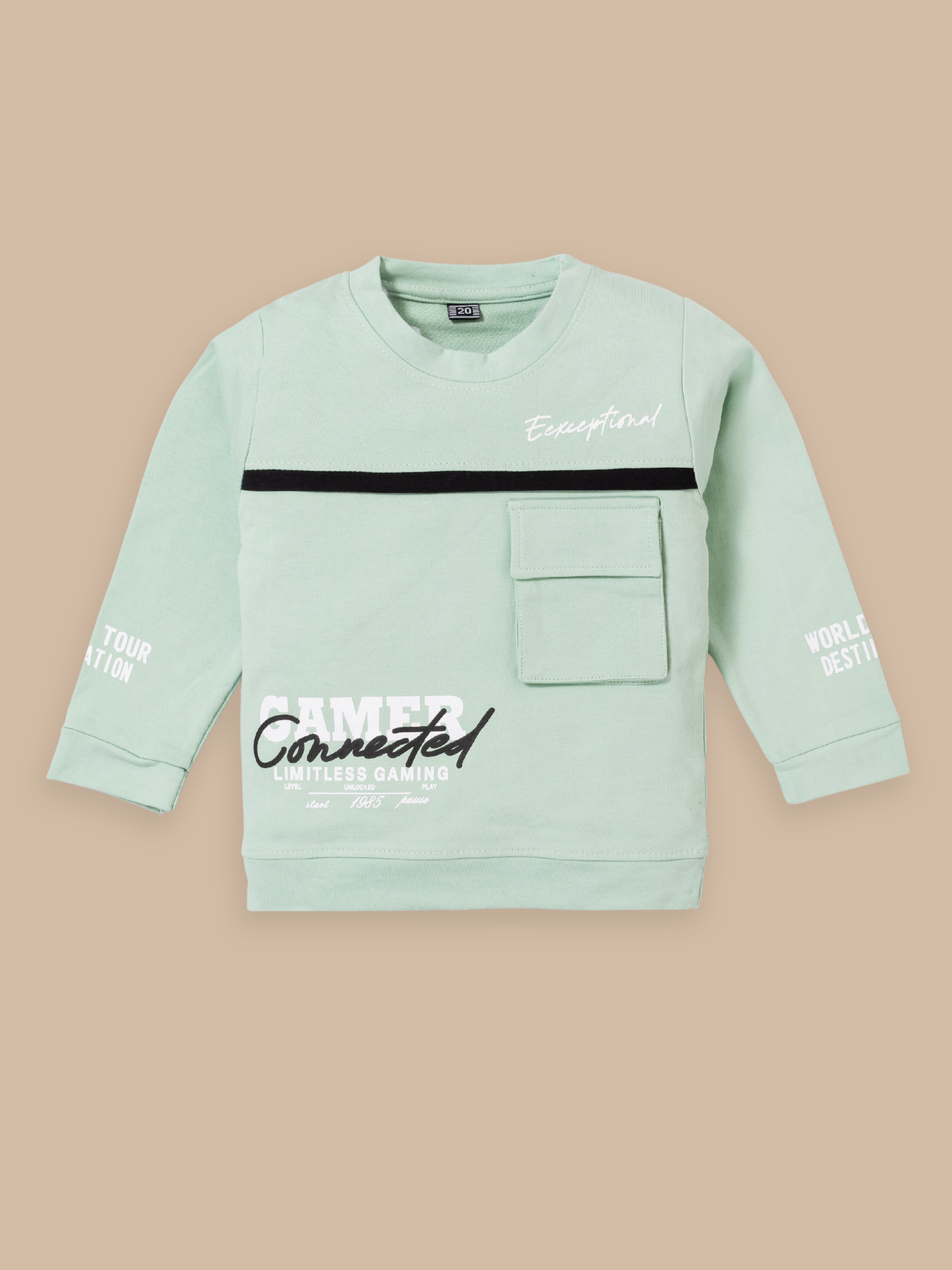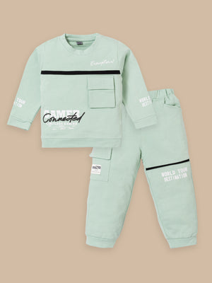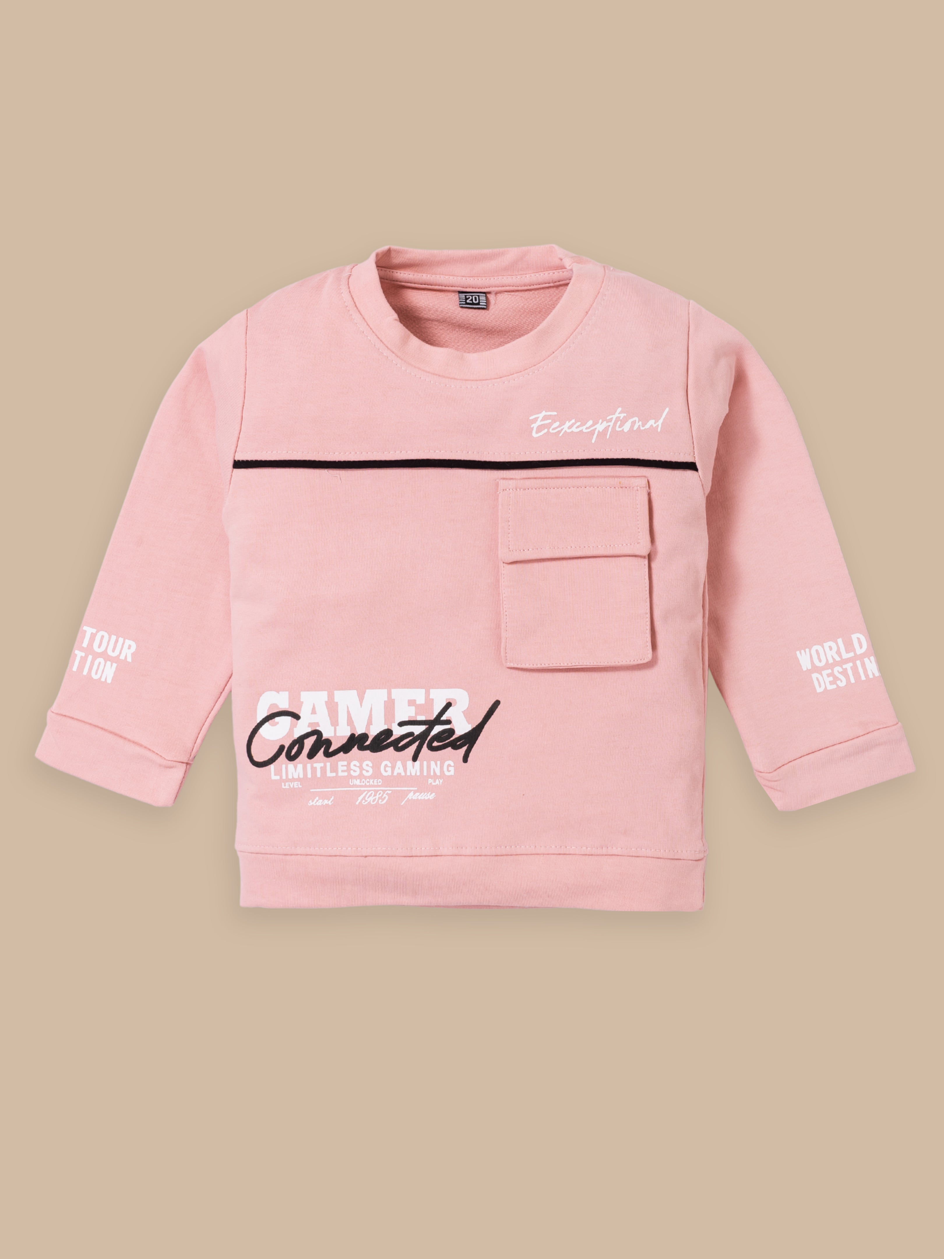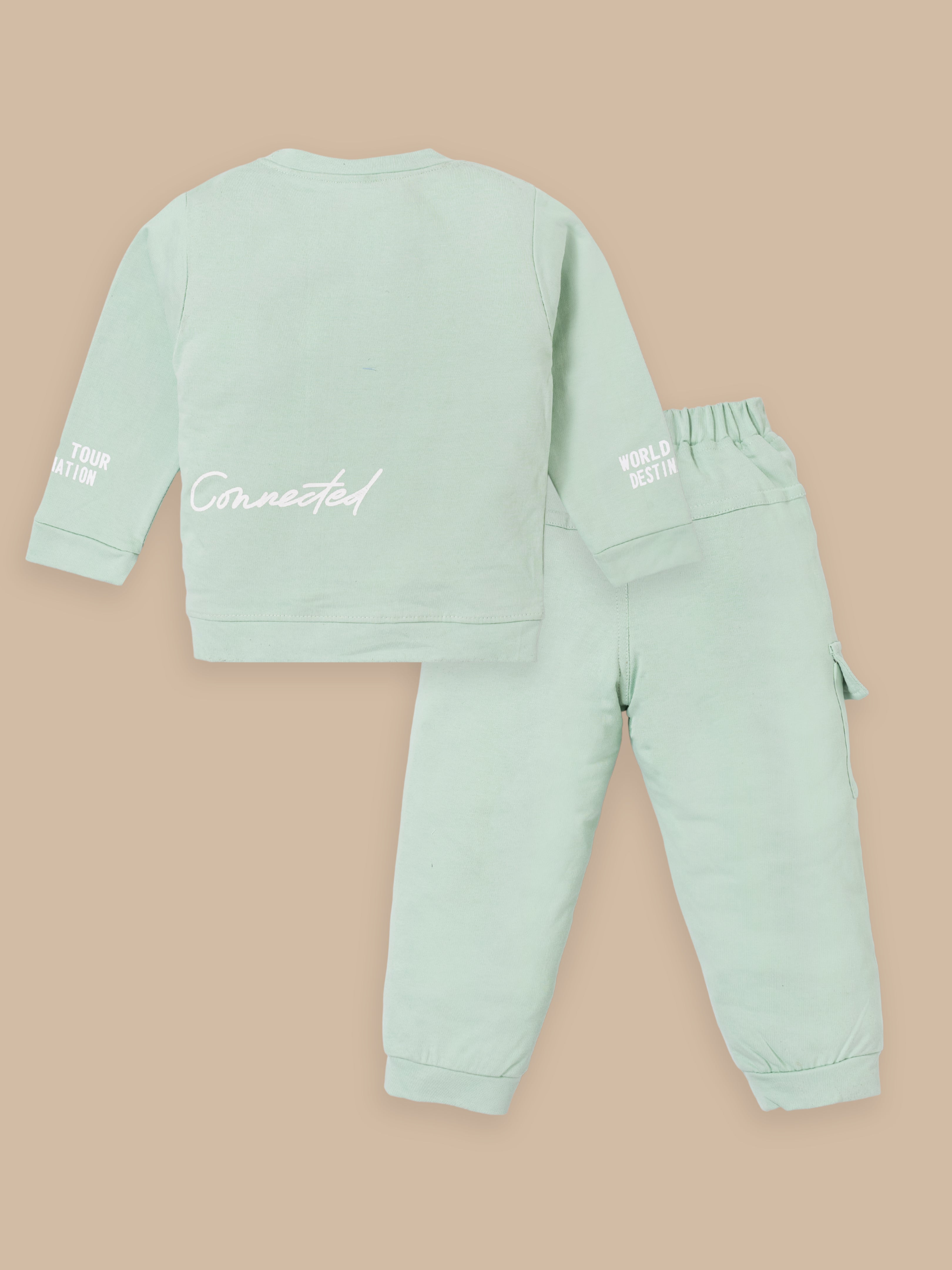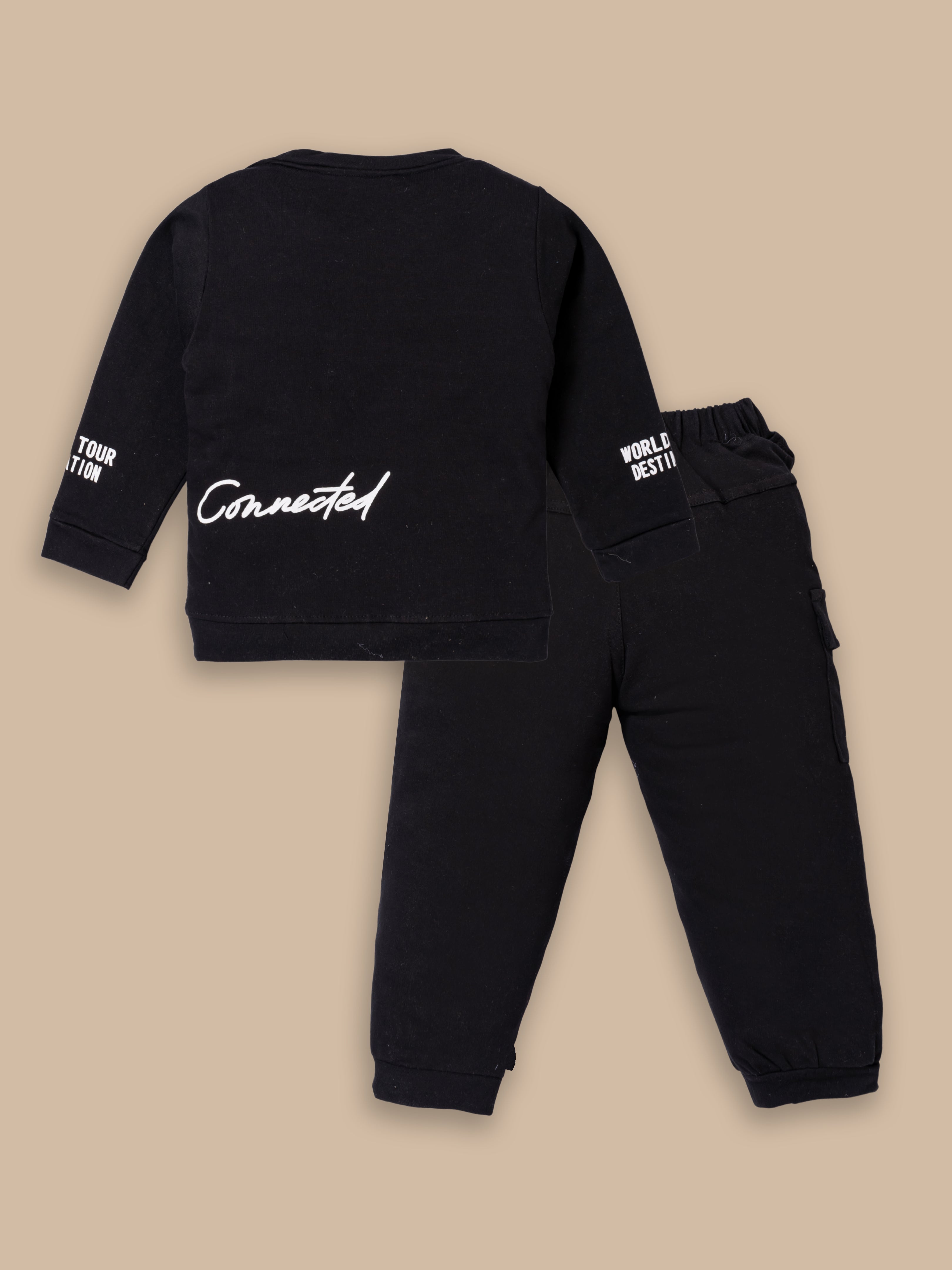 Junior Boss Our stylish and comfortable Cotton Winter Sweatshirt & Full Pant Set for Boys, designed to keep your little one looking dapper and feeling at ease during all their adventures. This sets are perfect for warm weather and playtime activities. The fabric is gentle on the skin. With short sleeves and a relaxed fit, the shirt ensures excellent ventilation. The elastic waistband ensures a secure and comfortable fit, allowing for easy movement and play. This kids clothing set for boys is available in different colors.