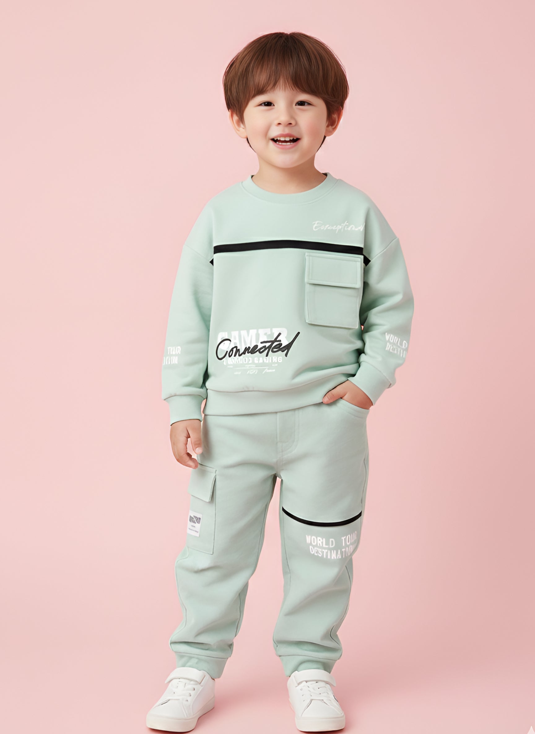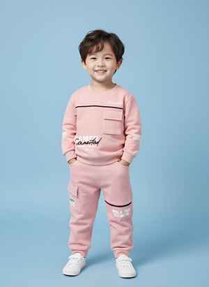 Boys Winter Outfit Set – Warm Sweatshirt & Pant | Black & Pink & Mint