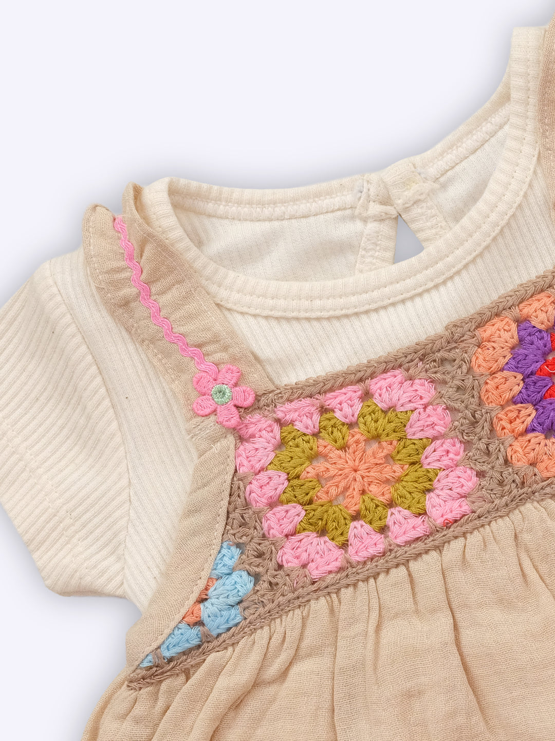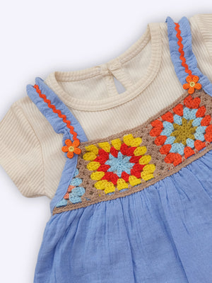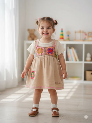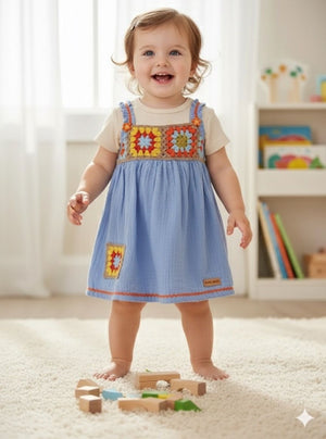 This is a clothing set for babies that includes a dungaree set, 1 Dungaree Romper, Made from naturally-breathable cotton, hence goes well in all weather in Spring, Autumn & Winter, Summer. Especially for Summer wear and cold seasons. Dungarees from is a fashionable casual wear & party wear to dress up your little one in style.