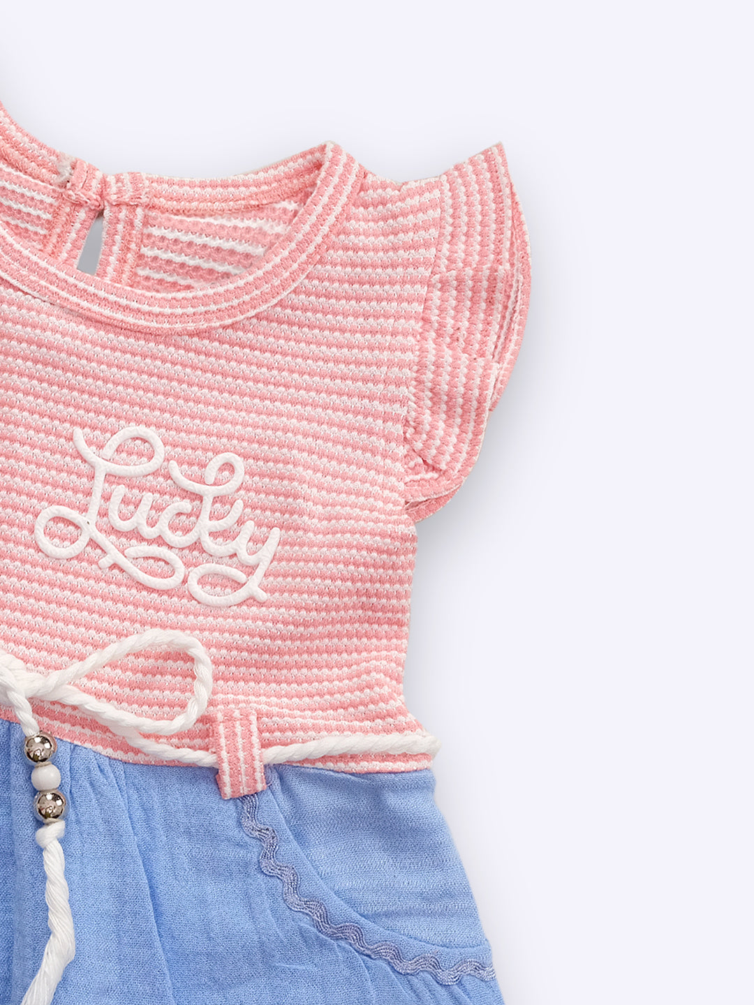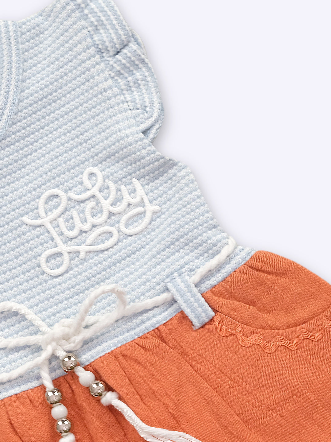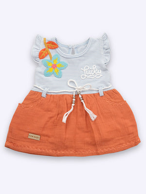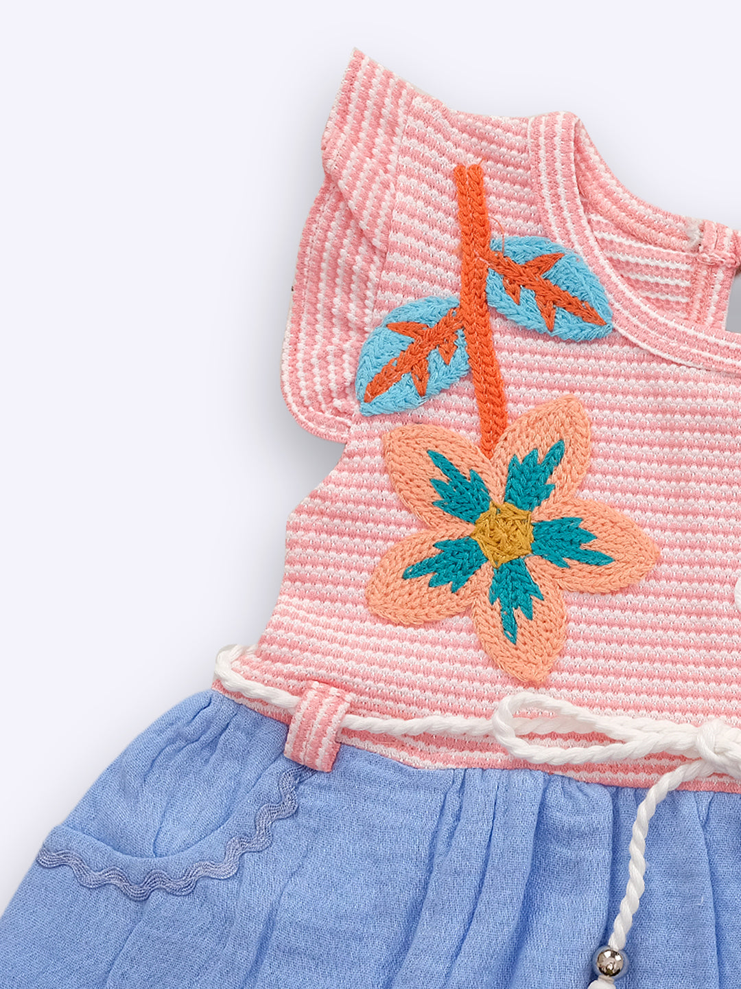 KIKO Infant Girls Striped Applique Fit & Flare Dress
