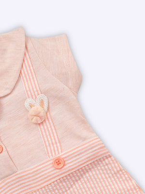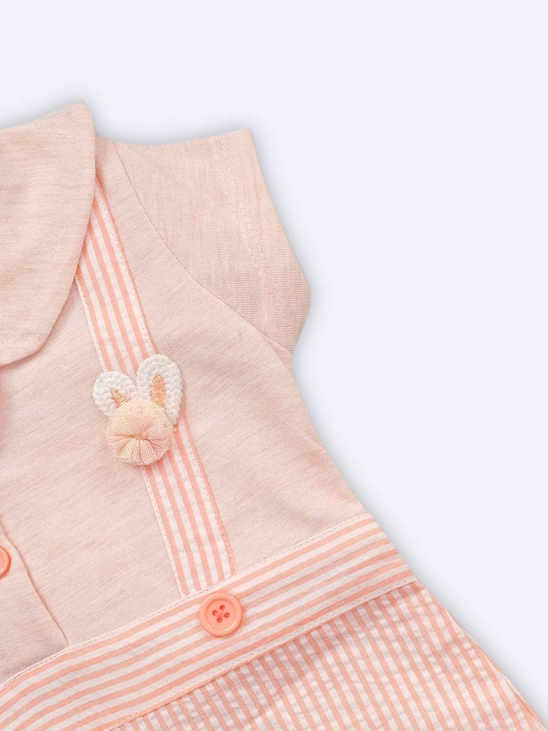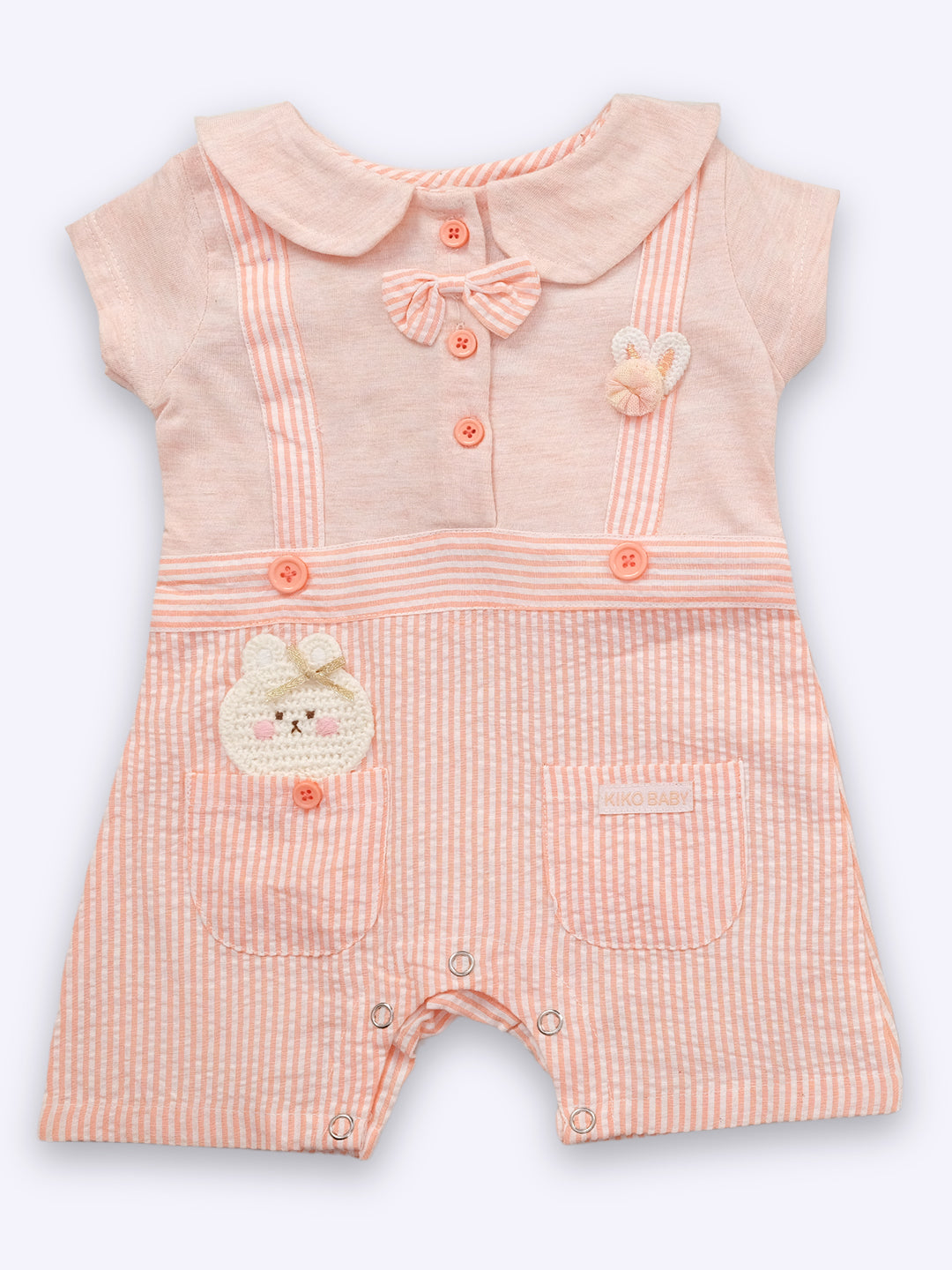 KIKO Your little one into a world of comfort and style with our charming Baby Cotton Romper. Crafted from the softest cotton materials, this ensemble ensures your baby stays cozy and content throughout the day.The romper features a convenient snap-button closure for easy dressing and diaper changes, while the T-shirt complements the look with its adorable design
