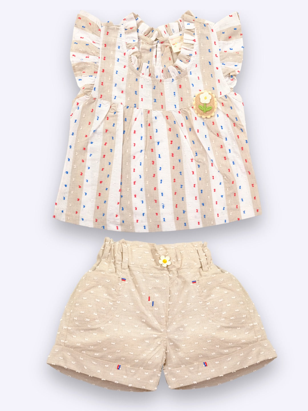 Memeko 100% Pure Cotton Half Sleeve Top and Hot Pant Set, tailored especially for your little girl. this style comfort for active baby girls. Our top and hot pant set is made from 100% pure cotton, ensuring a soft, breathable, and skin-friendly experience. It's perfect for all-day wear, They're designed with your child's well-being in mind.