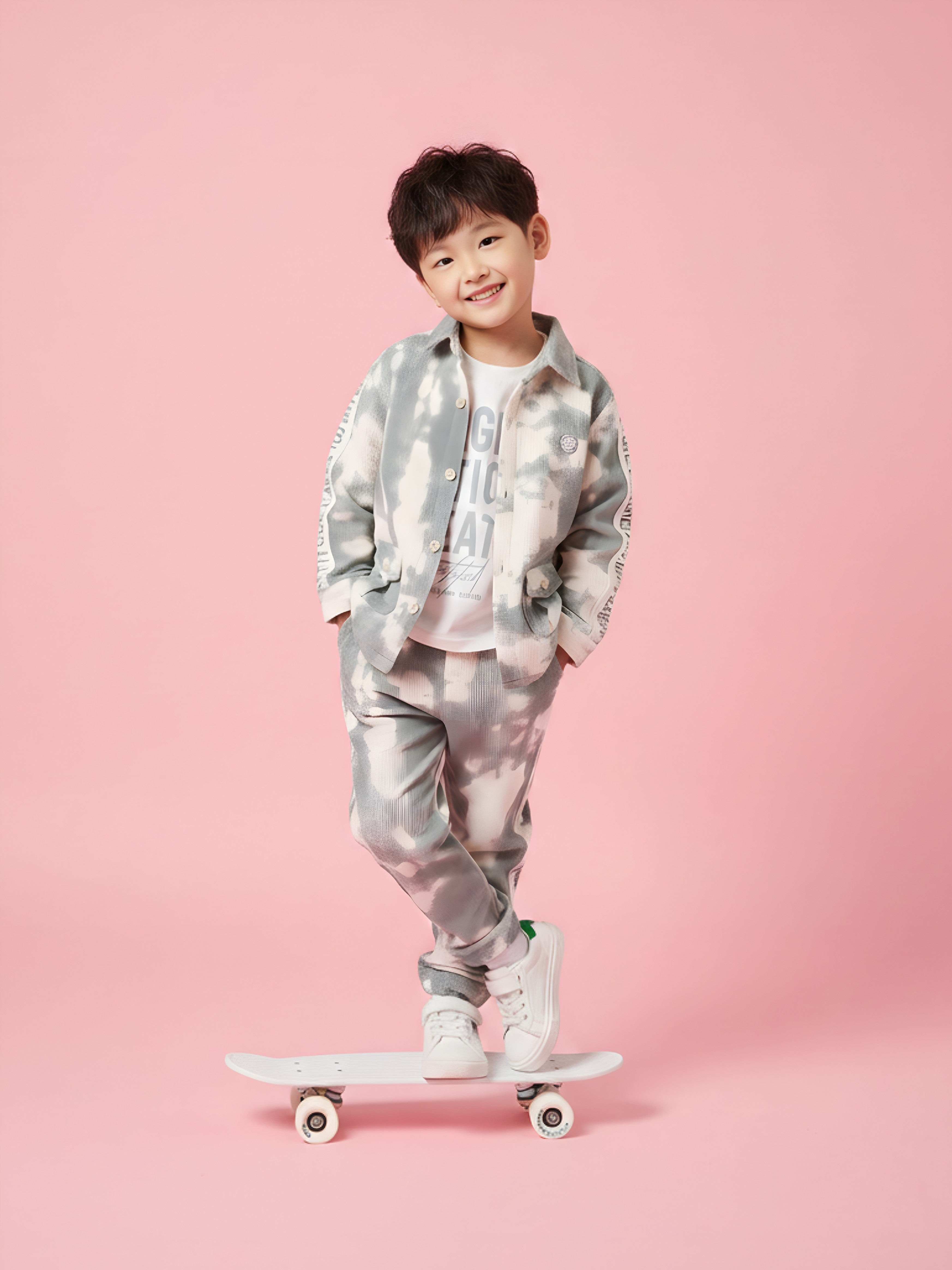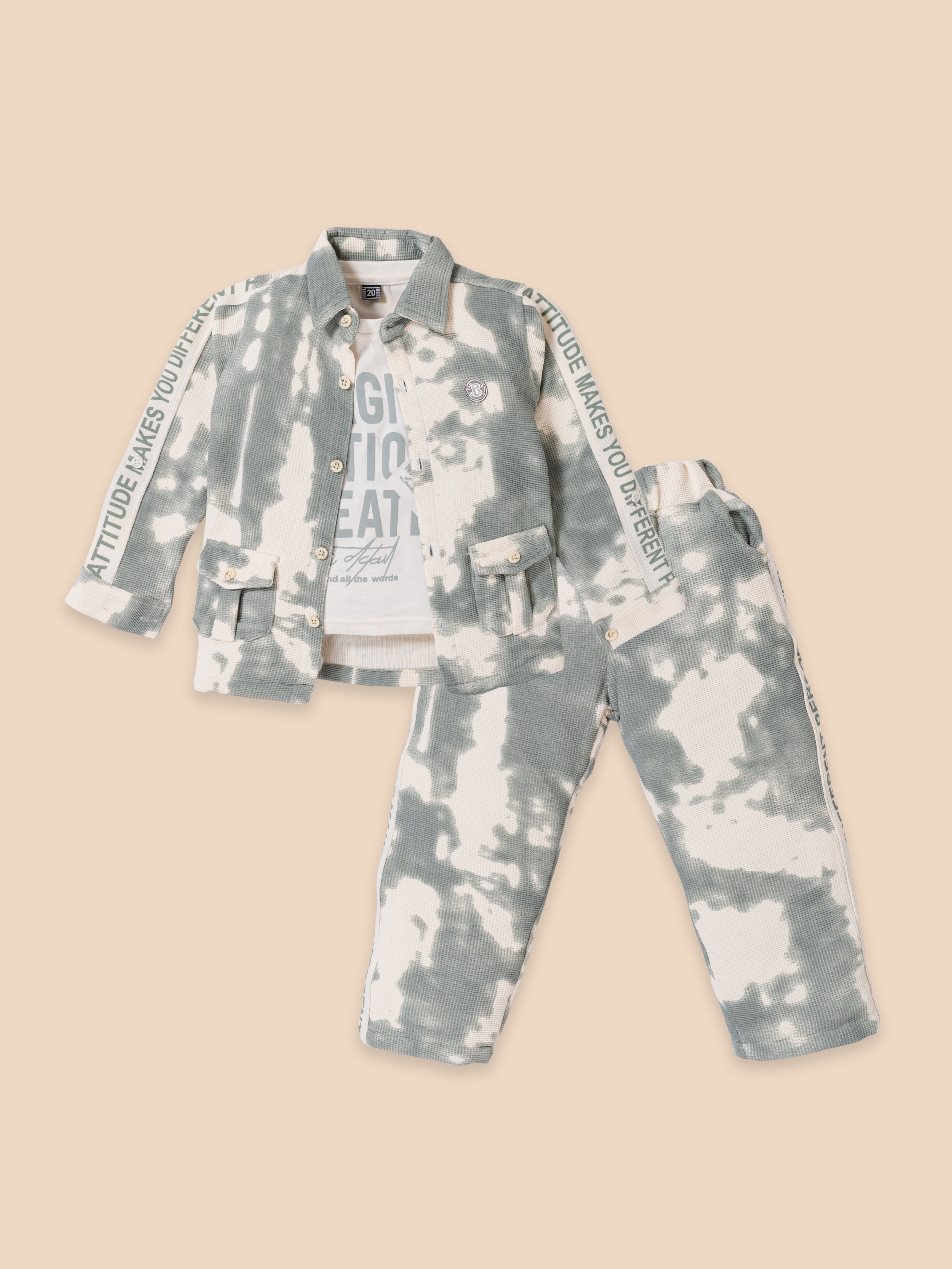 Premium Boys Casual Tie-Dye Outfit Set with Shirt Jacket