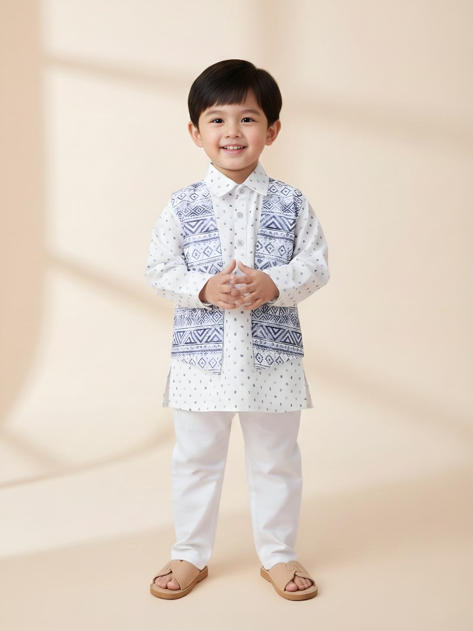 Perfect wear dress to keep the infant and toddler happy and cozy while dipping temperature. Fashion This outfit is a classic example of Indian ethnic wear for kids specifically a Kurta Pajama set with a Bundi ,easy on/off.Double stitching to maximize softness and minimise problems with rolled hems.