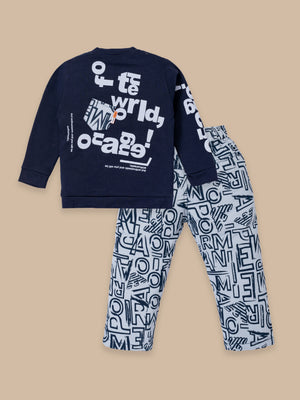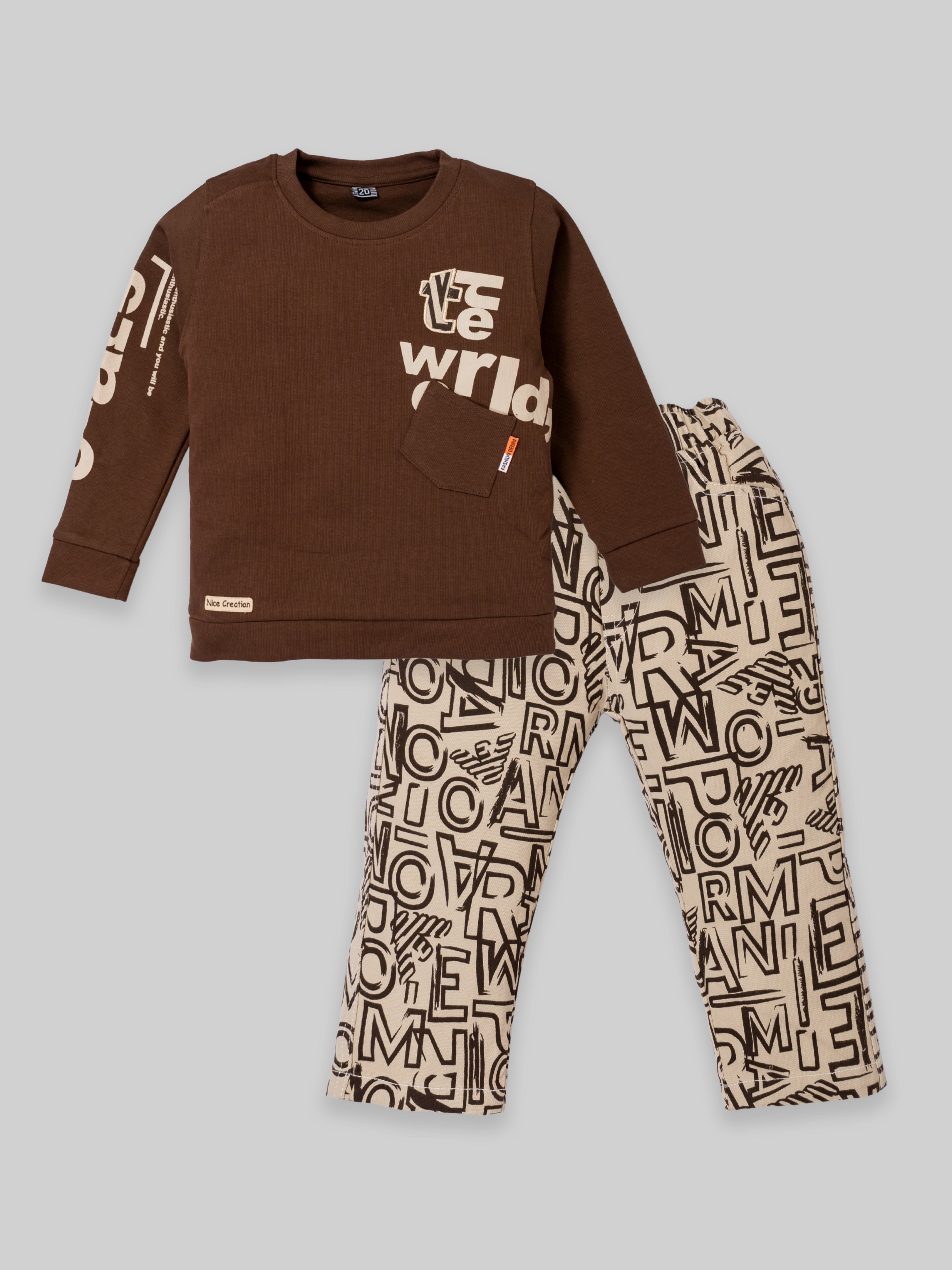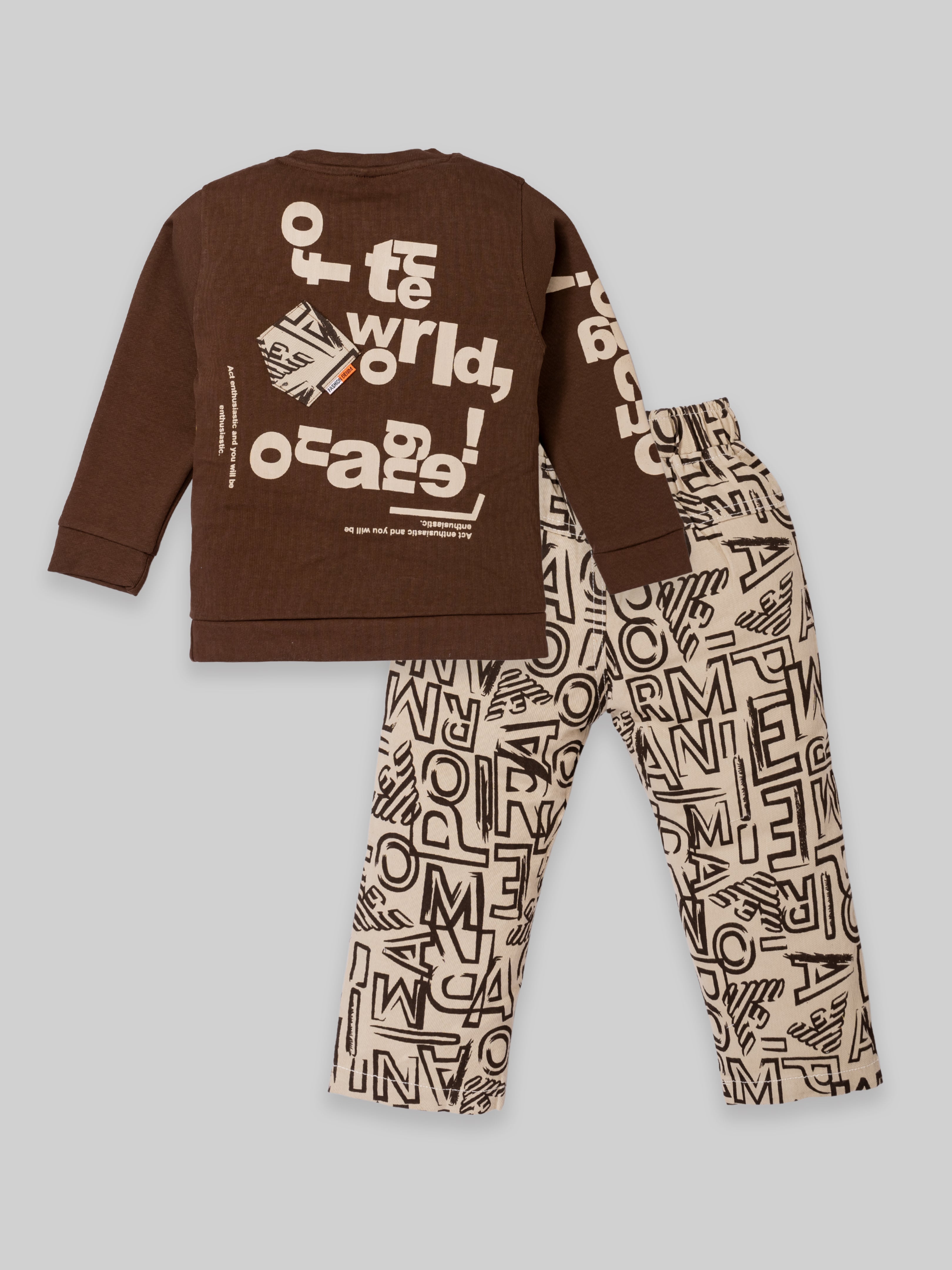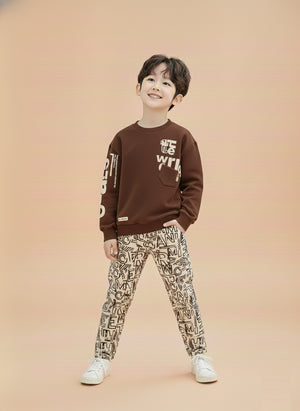 Boys Winter Outfit Set – Warm Sweatshirt & Pant | Navy & Brown
