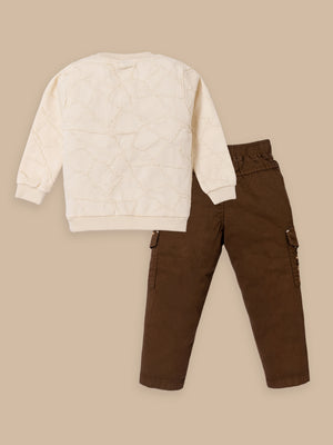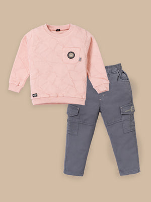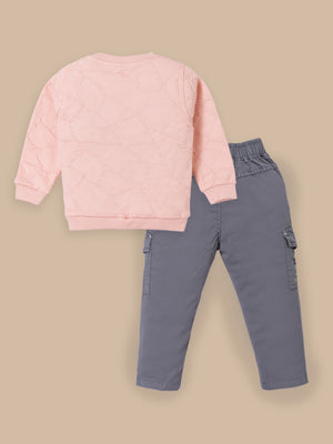 Toddler & Kids Outfit Set – Sweatshirt & Cargo Pant Set | Cream & Pink