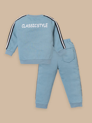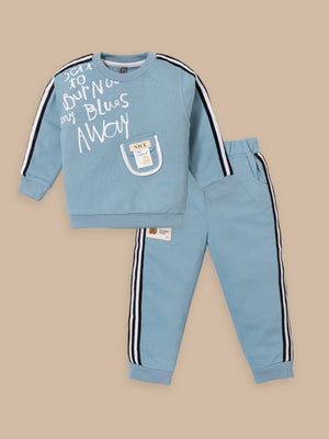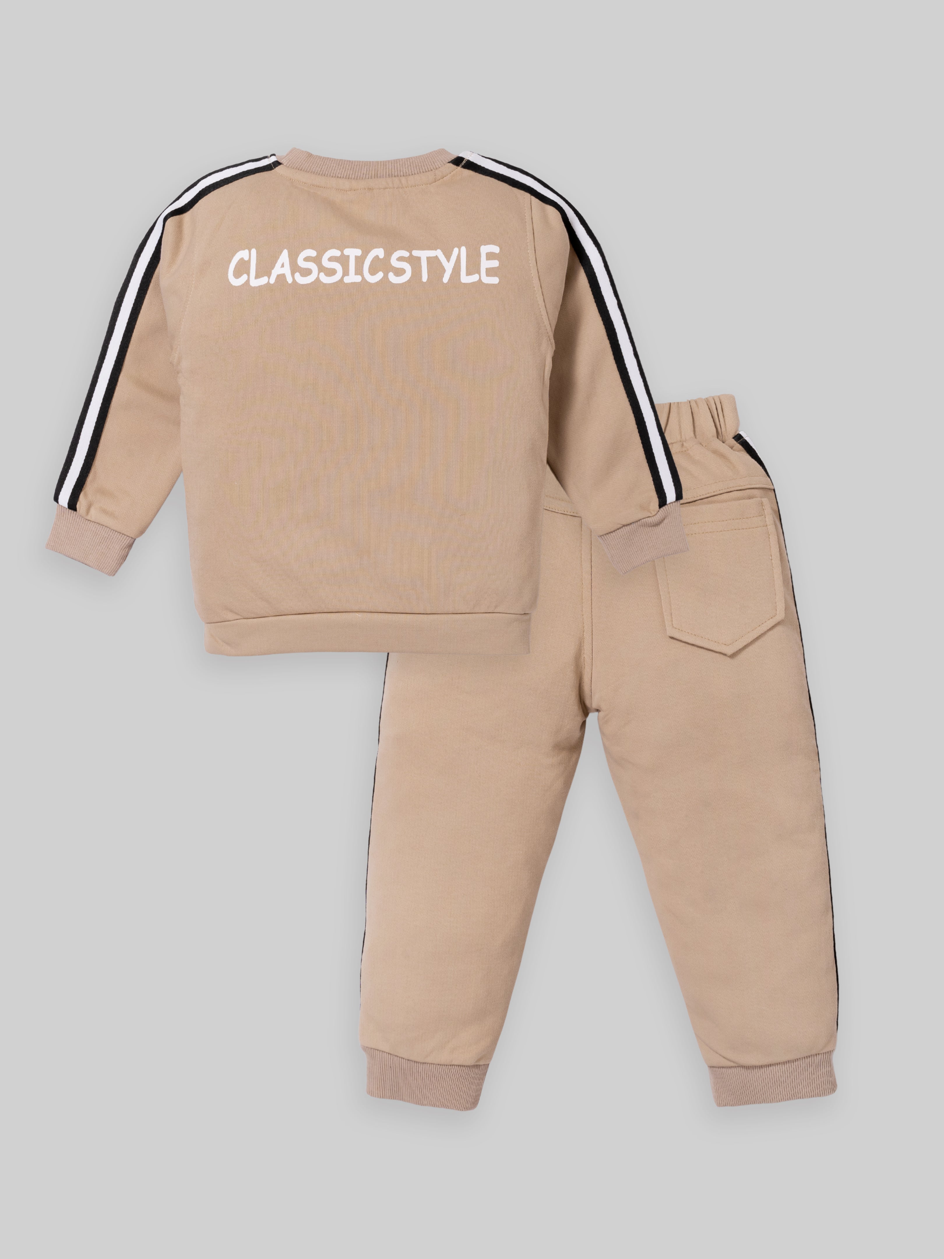 Junior Boss Our stylish and comfortable Cotton Winter Sweatshirt & Full Pant Set for Boys, designed to keep your little one looking dapper and feeling at ease during all their adventures. This sets are perfect for warm weather and playtime activities. The fabric is gentle on the skin. With short sleeves and a relaxed fit, the shirt ensures excellent ventilation. The elastic waistband ensures a secure and comfortable fit, allowing for easy movement and play. This kids clothing set for boys is available in different colors.